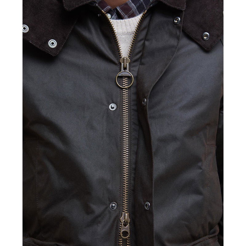 Barbour Modern Beaufort Quilted Hooded Full Zip Wax Jacket pairs heritage quality with contemporary styling. This update features a tailored fit with a protective stand collar and detachable hood, while the waxed finish and quilted lining deliver classic weather resistance with optimal warmth.