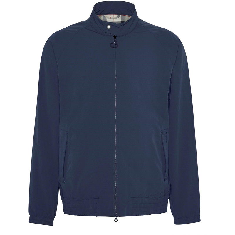 Barbour's Royston Hooded Rain Anorak offers lightweight protection from unexpected showers. This casual jacket features a hip-length design with a shaped stand collar, secure zip-front closure, and an elasticated bottom and cuffs for a comfortable fit, while lower welt pockets with branded rivets add Barbour styling.