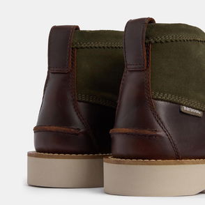 The Barbour Nelson is a mudguard chukka boot constructed with a tumbled nubuck upper and a contrast heel panel. Set on a cushioned EVA outsole with built-in flex points, this three-eyelet pair also features a full-length insock with a cushioned heel cup for enhanced comfort. This rugged pair is finished with a metal Barbour badge.