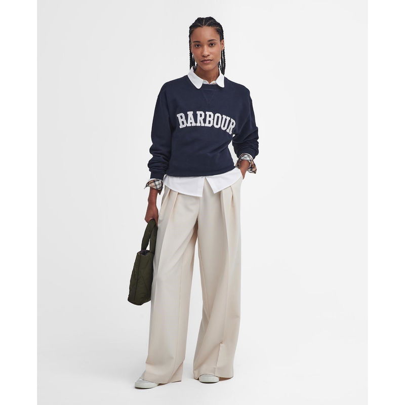 The Barbour Northumberland Sweatshirt brings a varsity-inspired touch to your casual wardrobe. Crafted from 100% cotton for comfort, it features a classic crew neck silhouette and is finished with an embroidered Barbour graphic across the chest. Ideal for relaxed weekends, countryside walks, or laid-back layering.