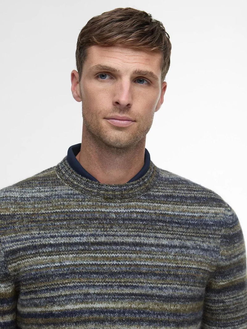 Pately Striped Wool Rich Crew Neck Jumper, Inky Marl