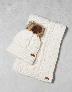For the hard-to-buy-for Includes a beanie and scarf Logo detail Faux-fur bobble Presented in a gift box.