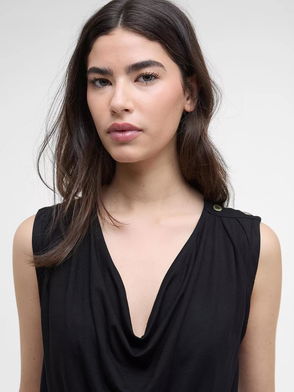 Discover timeless elegance with the Priya T-Shirt in a slim fit - a sleeveless top that exudes sophistication. The mock shoulder placket features branded studs, adding a touch of refinement, while the rib neckline ensures a comfortable fit. A silicone ID badge at the back completes this stylish piece, perfect for elevating your wardrobe essentials.