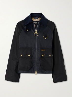 Barbour’s timeless jackets are loved by celebrities and royals alike. This ‘Raelynn’ style is made from robust waxed-cotton with a contrasting cotton-corduroy collar and gold-tone hardware. Turn up the cuffs to showcase the signature tartan lining.