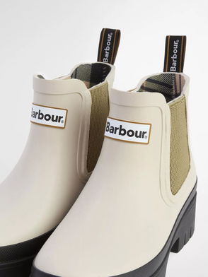 Description: Practicality and style come hand in hand with the Barbour Raelynn Wellingtons. This calf-height rubber boot is sat atop a chunky sole with an adjustable buckle to the ankle and Barbour logo plaque to finish. Simply slip into this pair when the wet weather comes calling to ensure your fashion-forward style is never compromised. Materials: Upper: rubberother, Lining: polyester Product Code: 113181753