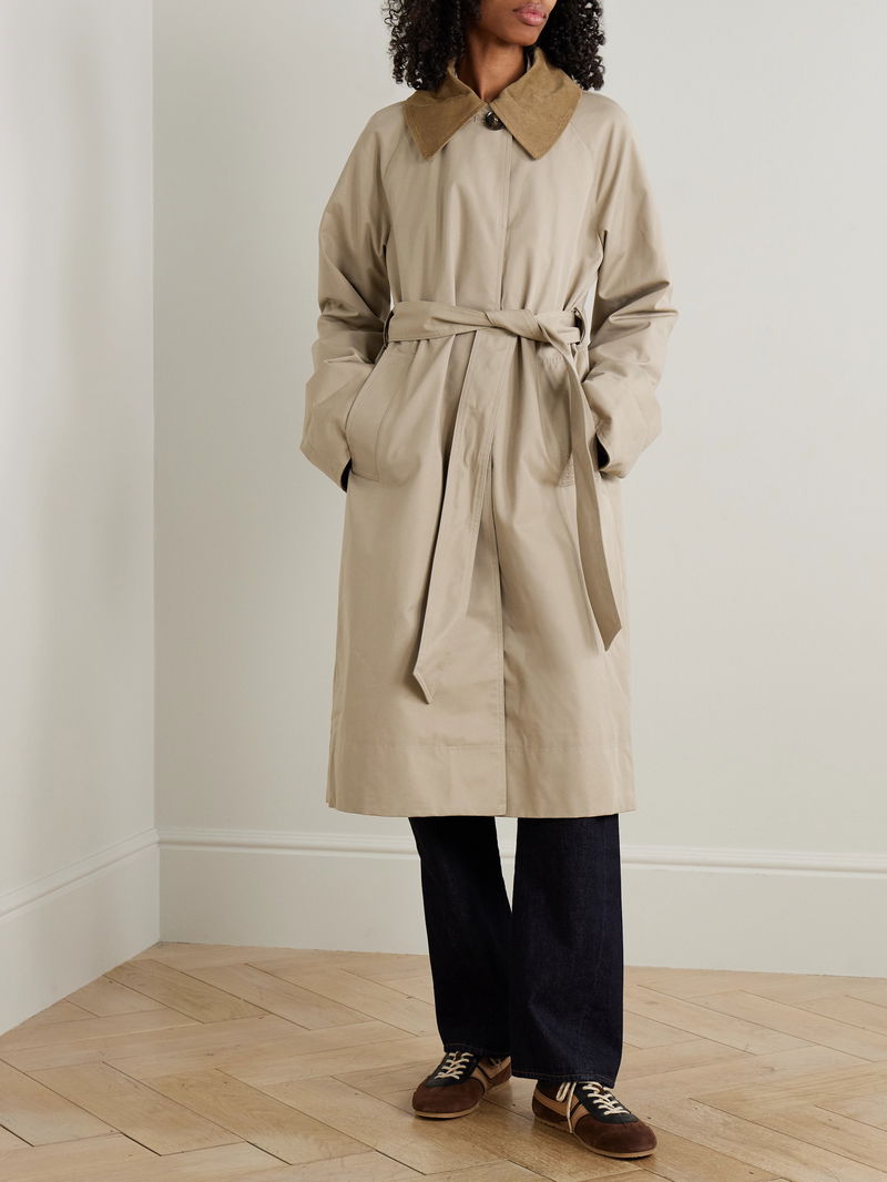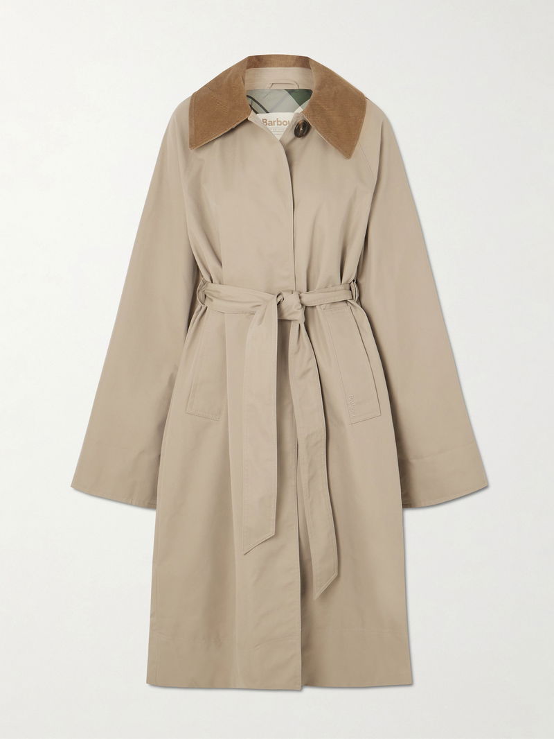 Barbour's 'Reagan' trench coat is the latest addition to the label's classic outerwear collection. It's tailored from waterproof cotton-blend twill and has a longline, relaxed fit tempered by a belt.