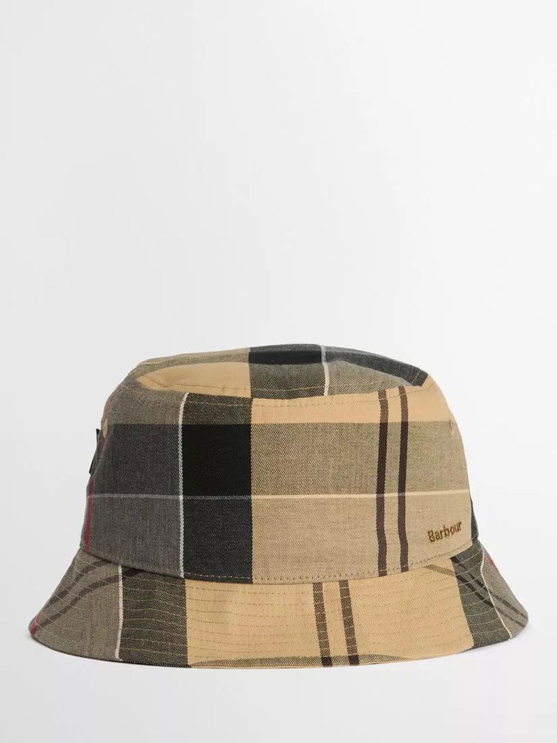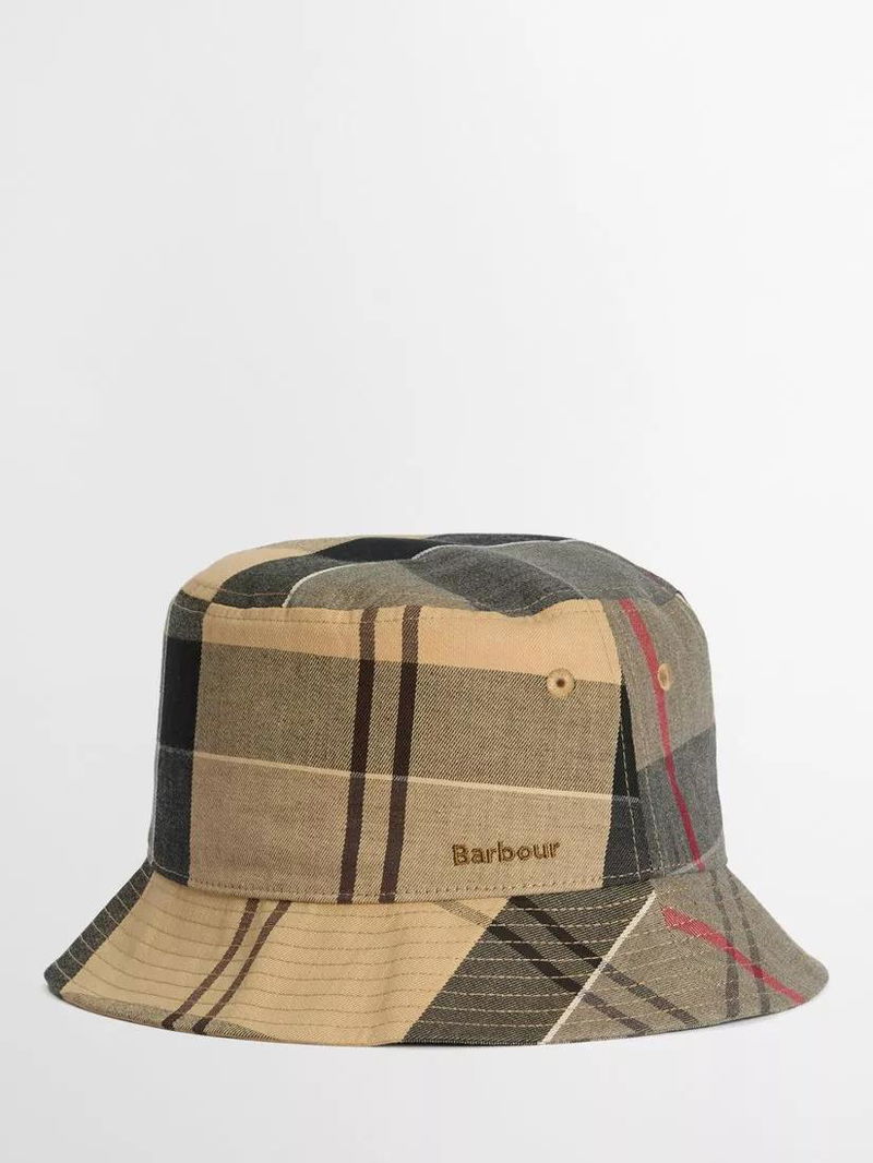 The Barbour Telfield tartan bucket hat is a stylish summer accessory, crafted with a lightweight canvas lining for comfort. Featuring a classic bucket shape, a woven branded side flag label, and Barbour embroidery on the left-hand side, it adds heritage-inspired detail to casual outfits while keeping you cool and protected.