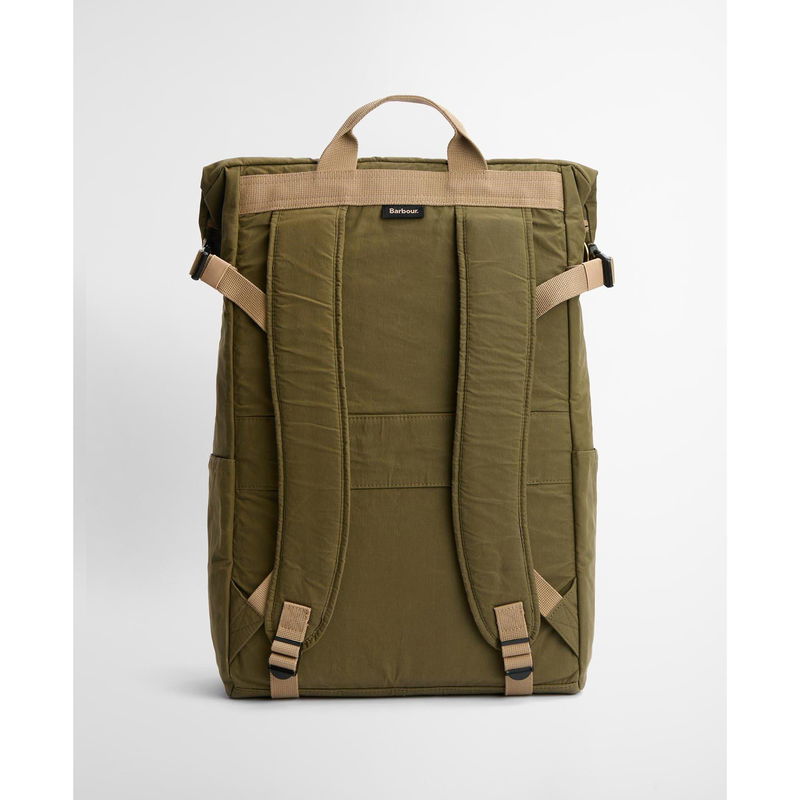 The Barbour Transport Fold-Over Backpack is designed for both style and functionality, perfect for weekend adventures or city commutes. It's spacious fold-over design features padded shoulder straps for comfort, a luggage strap for easy travel, and an internal laptop section with a fixed lanyard to secure valuables. Ideal for work trips, daily commutes, or weekend getaways.