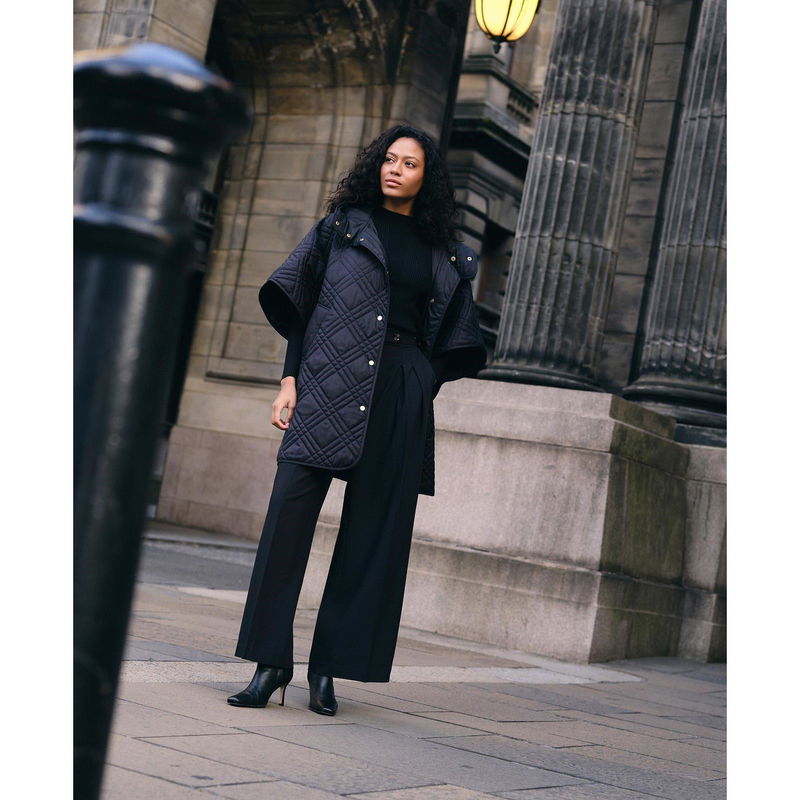 Wrap up in fashion style with the Barbour Women's Astor Tartan Quilted Cape.