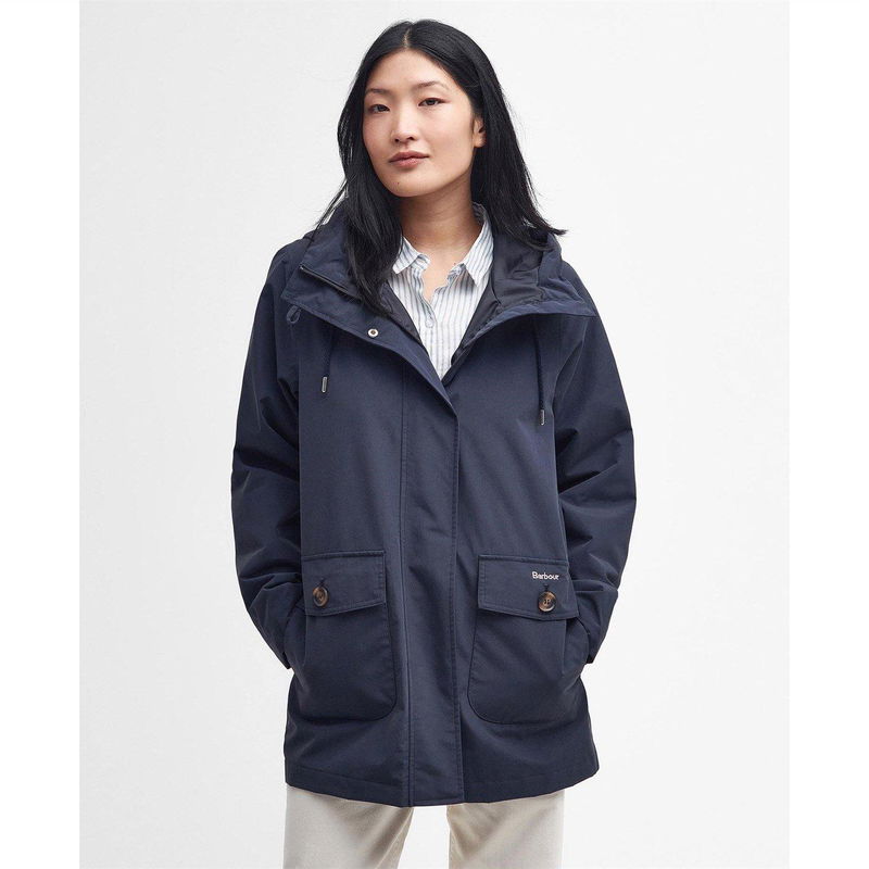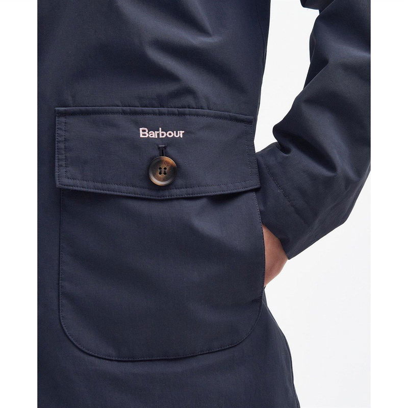 The Barbour Women's Lansdowne Lightweight Waterproof Mac offers practical protection with simplicity. This lightweight raincoat features a waterproof design that packs easily into a backpack, delivering reliable coverage for unexpected weather changes without compromising on Barbour's style.