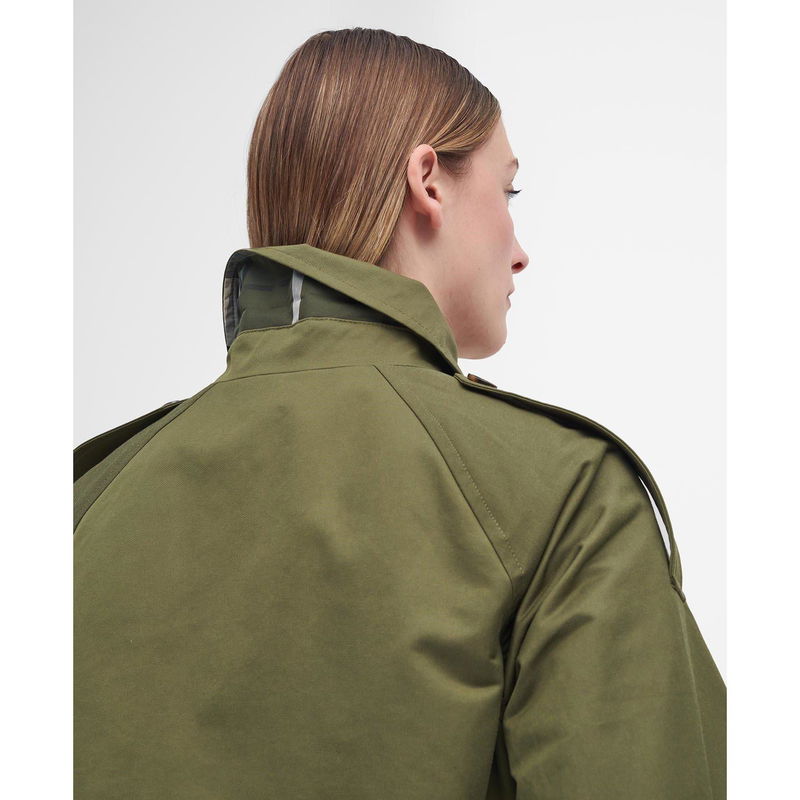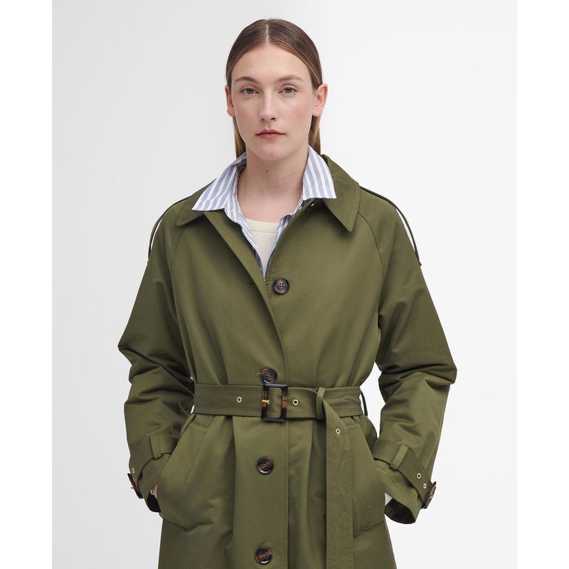 The Barbour Marie Showerproof Trench Coat delivers classic style with practical weather protection. With a matte showerproof finish, this coat features structured shoulders for a defined shape, while the adjustable belt allows for a customised fit with classic trench styling.