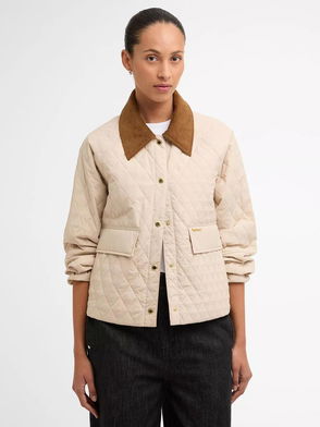 Barbour's Marla Long Sleeve Quilted Jacket delivers country style with practical lightweight warmth. The design features a standout corduroy collar and press stud fastening, while ribbed cuffs ensure a snug fit against the elements. This regular-fit layer brings style to everyday outings.