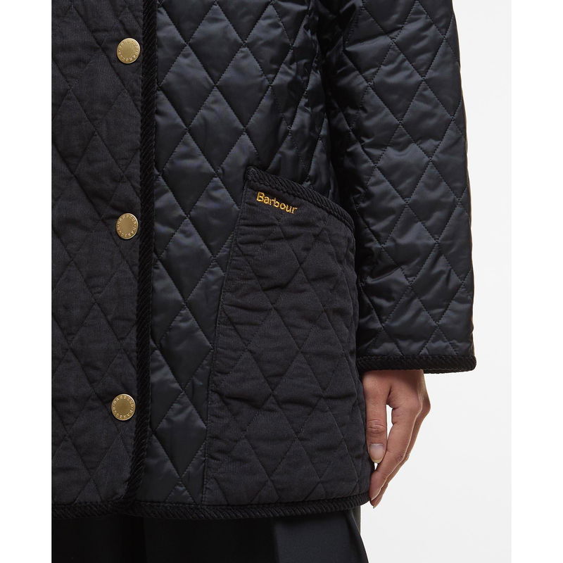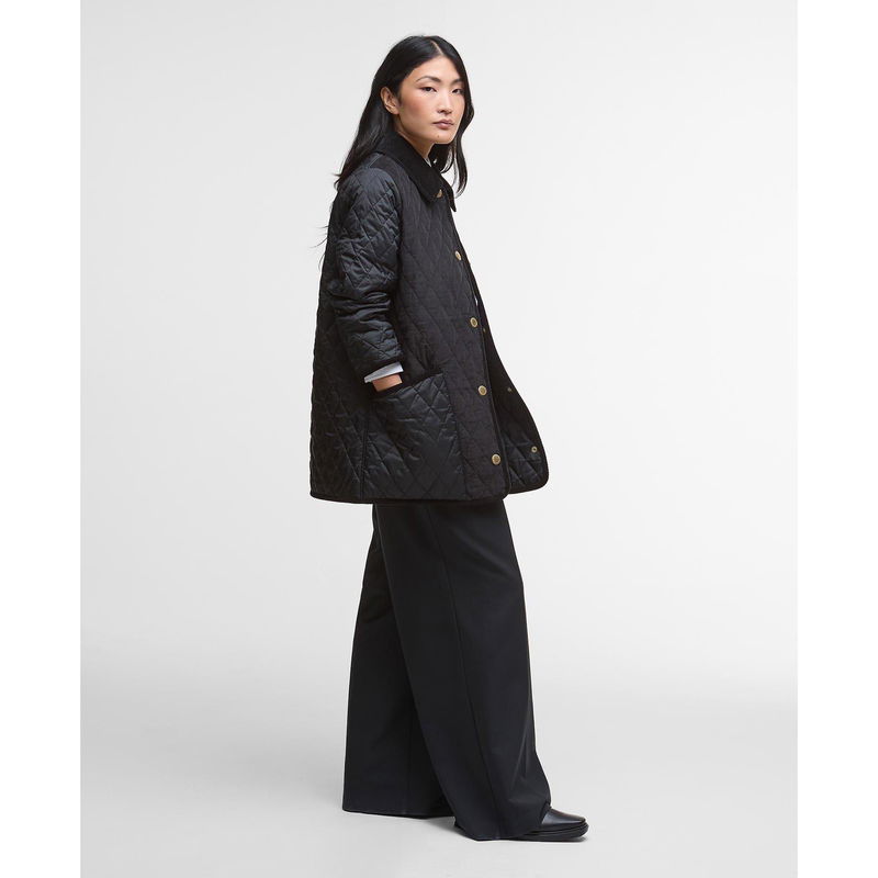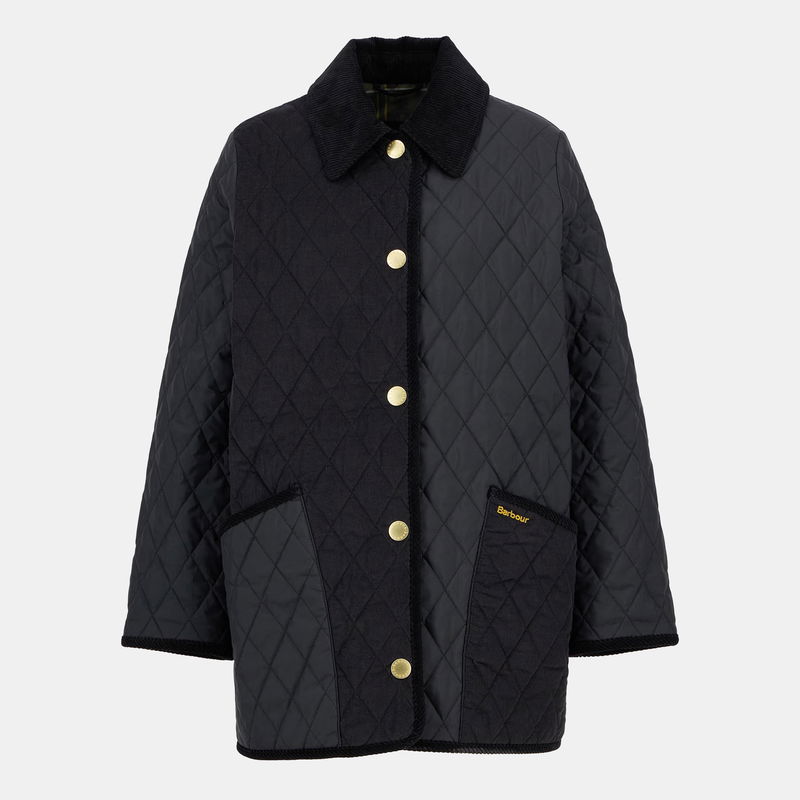 Barbour's Meryl Diamond Quilted Long Sleeve Jacket brings together classic style with practical design. The diamond quilting features patchwork detailing, while the oversized cord collar and branded stud fastening create a classic shape for everyday wear.