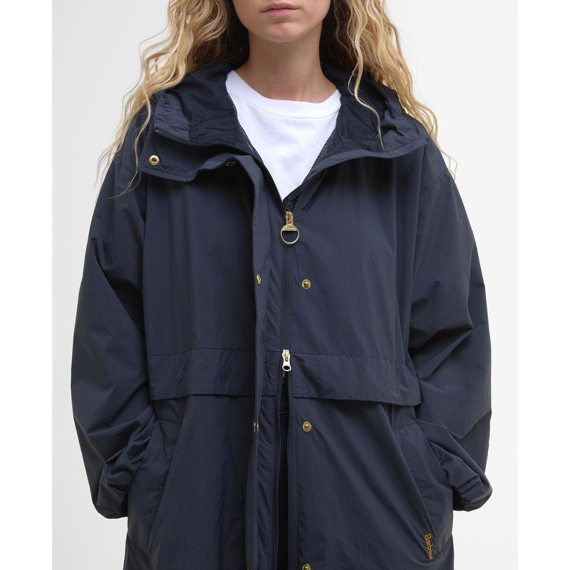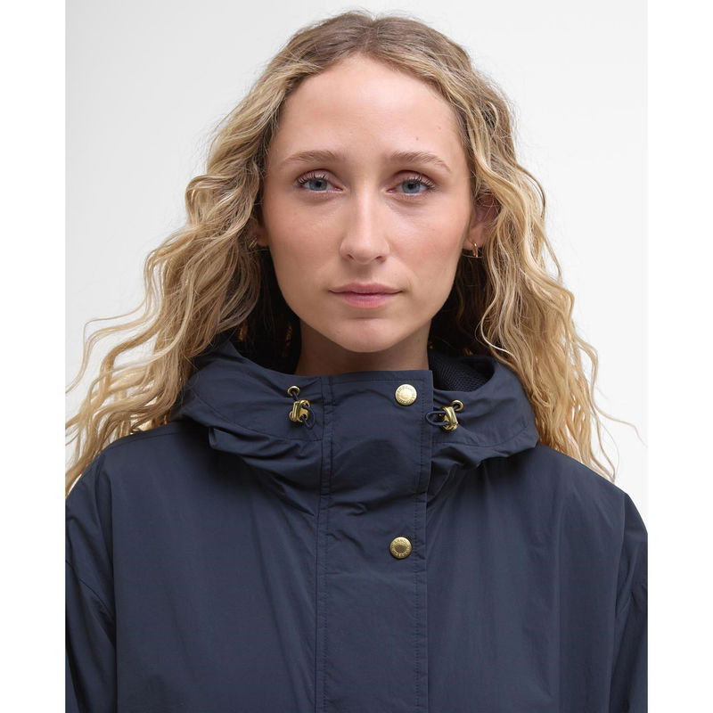The Barbour Naboo Funnel Neck Anorak delivers essential protection against unpredictable weather. This lightweight showerproof jacket design features a protective funnel neck, elasticated cuffs, and an overlapping waist detail that provides extended coverage while maintaining classic Barbour styling.