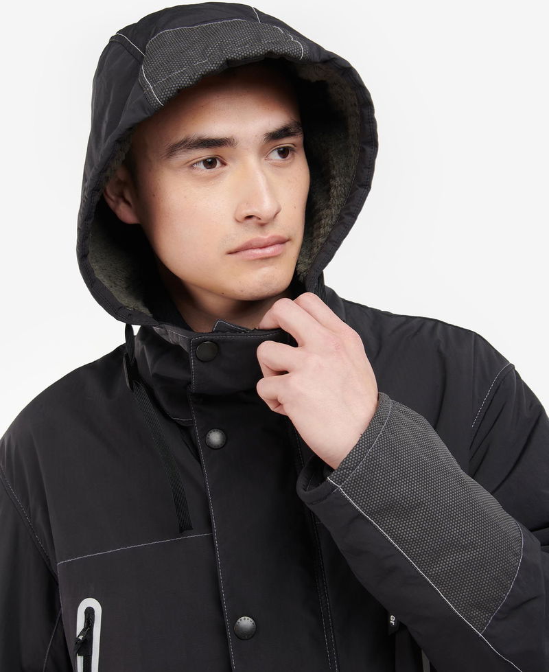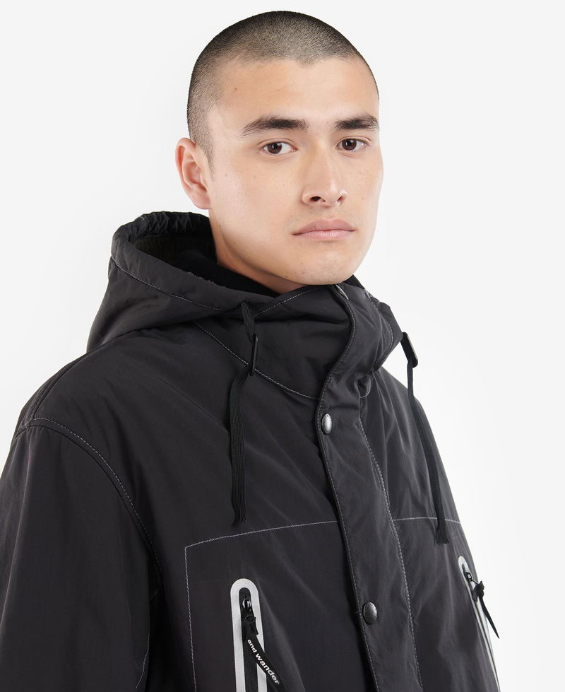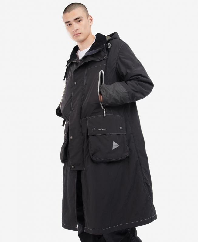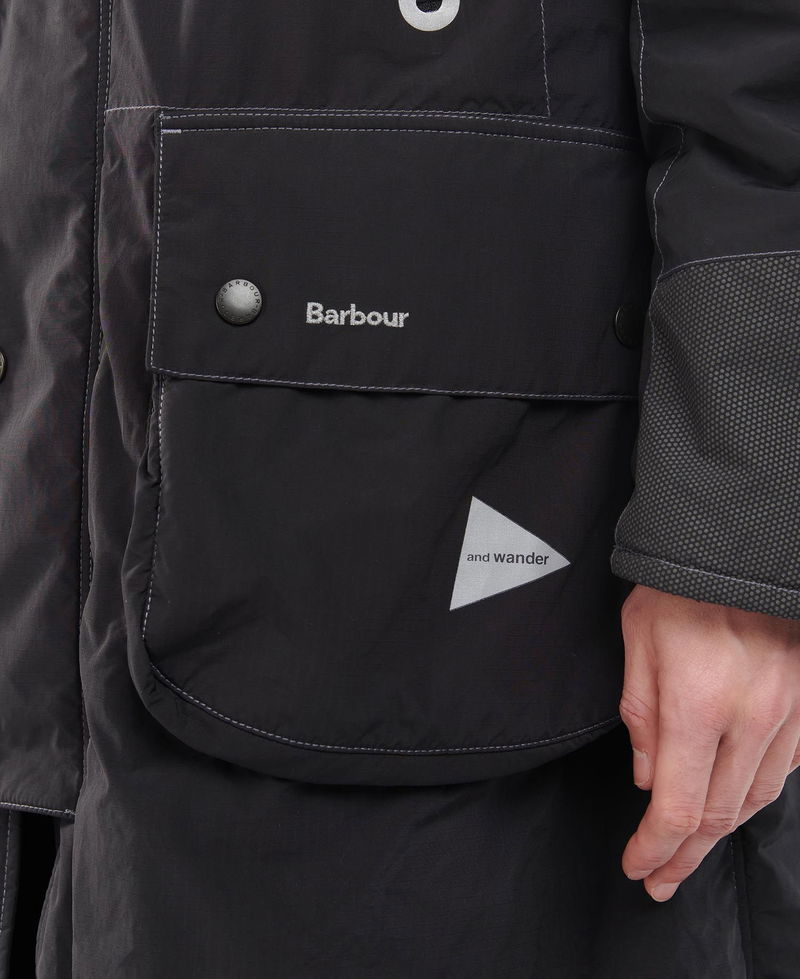 The Barbour x And Wander Insu Jacket boasts a longer length fully waterproof jacket with a fixed hood for the perfect outerwear for adventuring. This style boasts zip fasten hand warmer pockets and lower bellows pockets for optimal storage space. The Barbour x And Wander Insu Jacket offers a reflective dot print detail to sleeves in a 3m technology to catch the light through refraction.