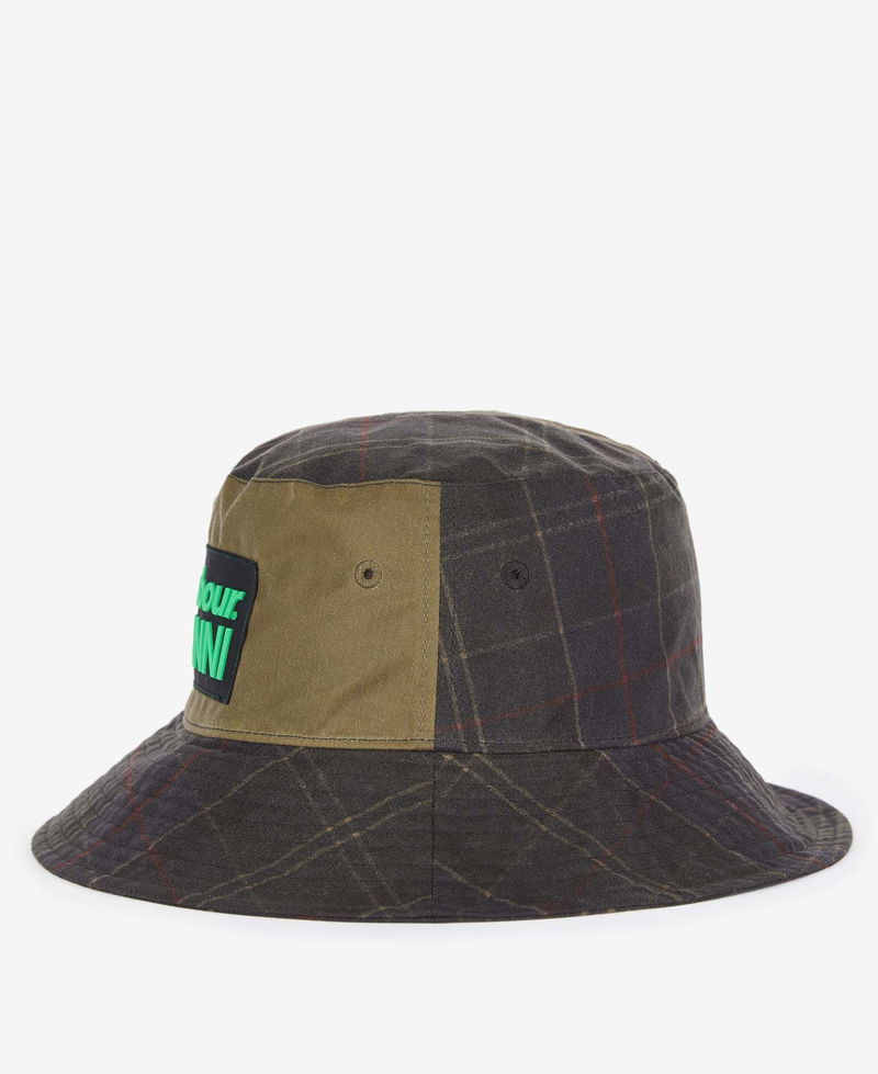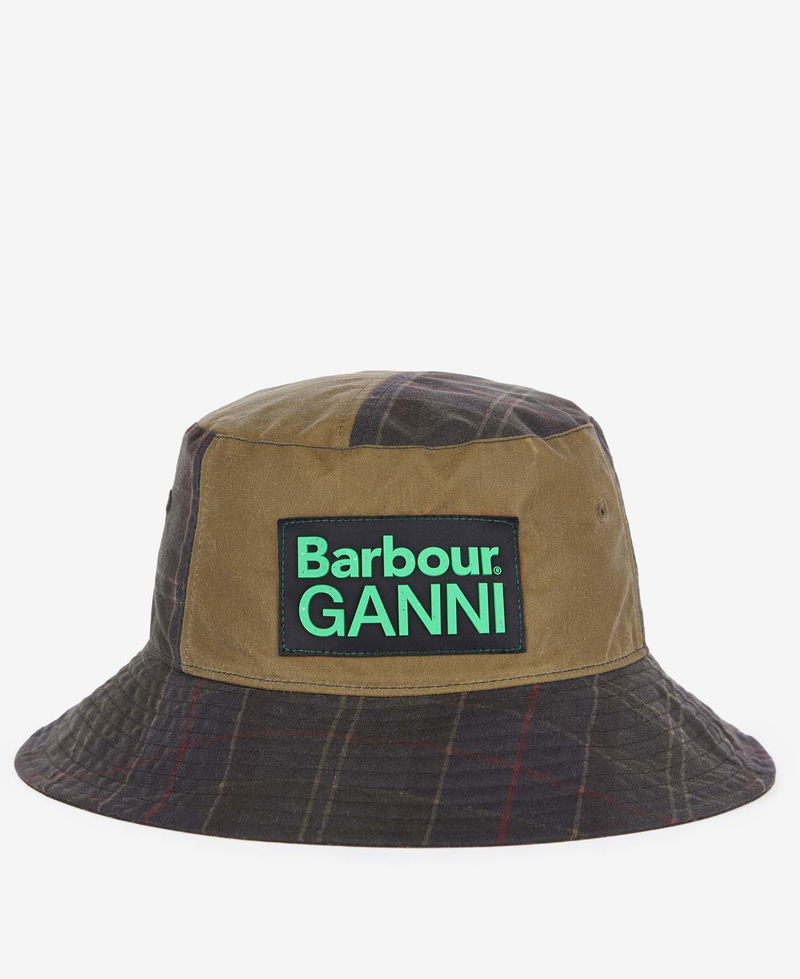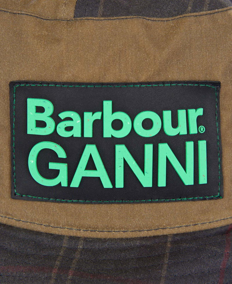 The Barbour x GANNI collaboration celebrates exaggerated features and core wardrobe staples for the perfect marrying of styles. A contemporary feel, the Barbour x GANNI Sports Hat is crafted from a waxed cotton design with asymmetric panelling detail for an authentic nod to the collaboration. Showcasing a branded badge to the outer front, this hat offers a bucket-hat inspired design for the perfect accessorising staple.