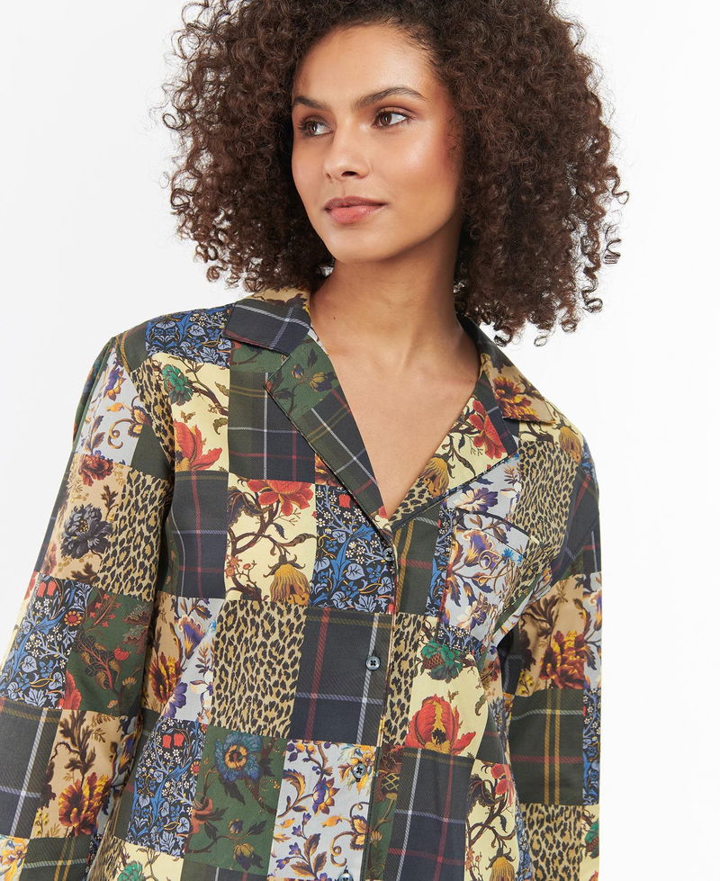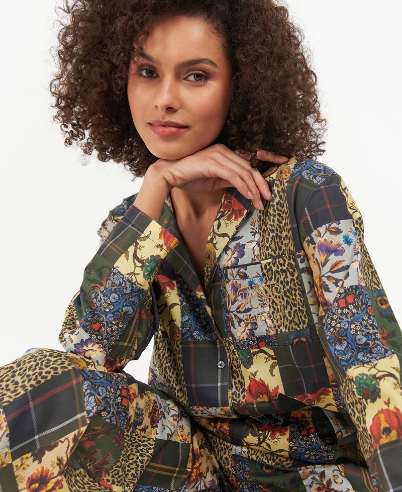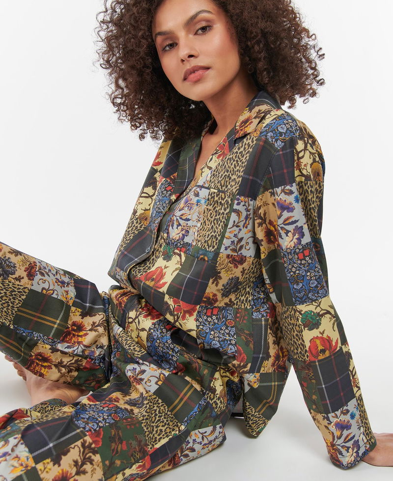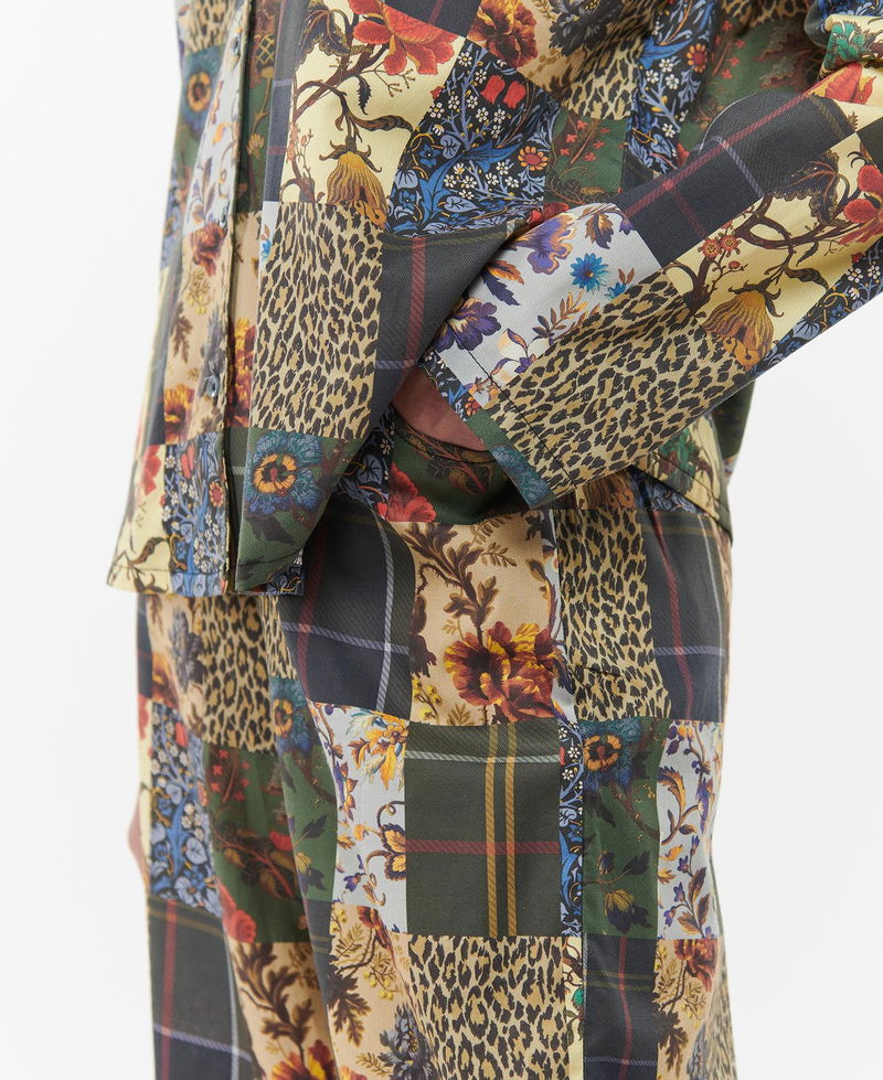 The Barbour x House of Hackney Florfield Pyjama Set is crafted from a soft cotton blend in an all over printed design. Featuring a button down shirt and trousers two piece, this set boasts a House of Hackney X Barbour signature patchwork print and a branded embroidery to the left chest.