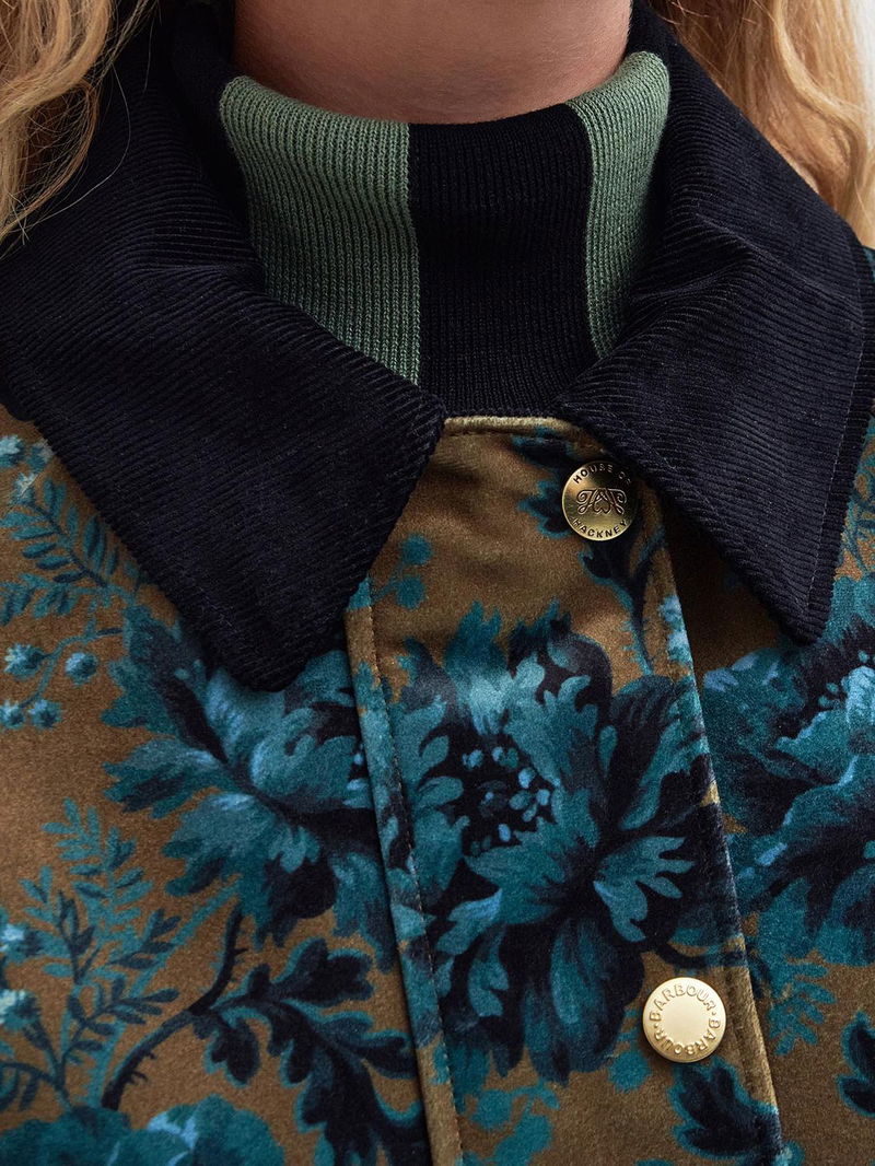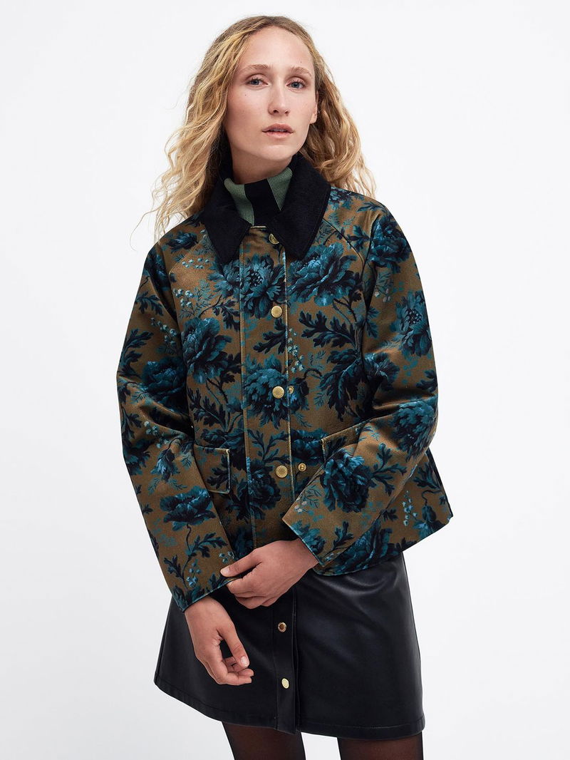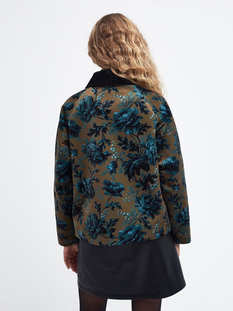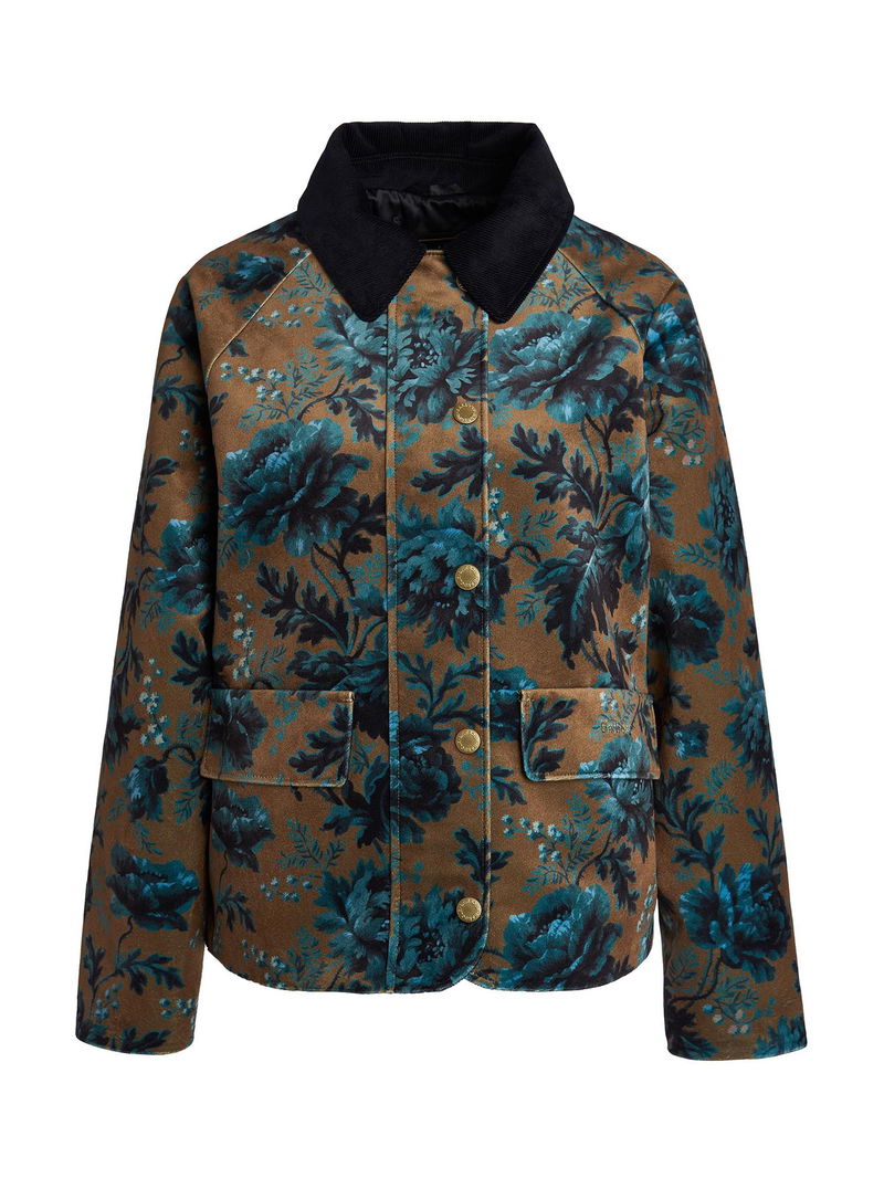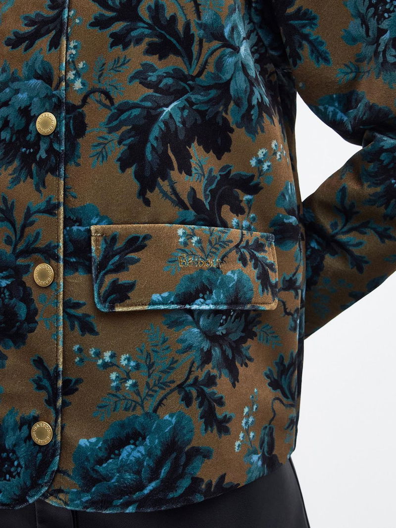 Lending military inspirations to your current outerwear repertoire, this utility jacket by Barbour comes with a shorter hem for a contemporary profile. Framed with a collar neckline and showcasing pretty florals throughout, it has a plush velvety texture for an indulgent feel.