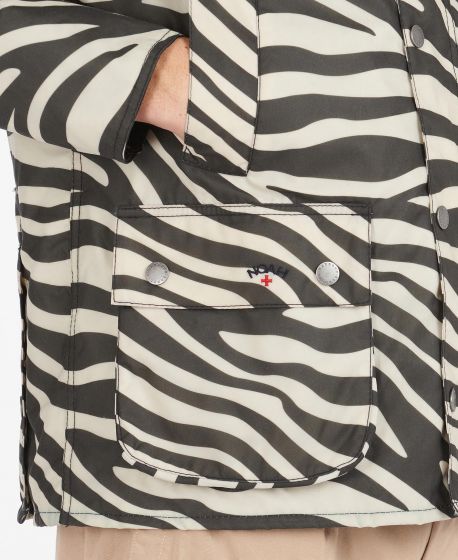 Created in collaboration with NYC-based lifestyle brand Noah, this version of the iconic Bedale jacket is crafted from an exclusive waxed cotton fabric in a bold paisley pattern. A truly eyecatching piece, it sports all the iconic features of the original Bedale like the corduroy collar, upper handwarmer pockets and lower bellows pockets, and is finished with embroidered Barbour and Noah logos to the bellows pocket flaps.
