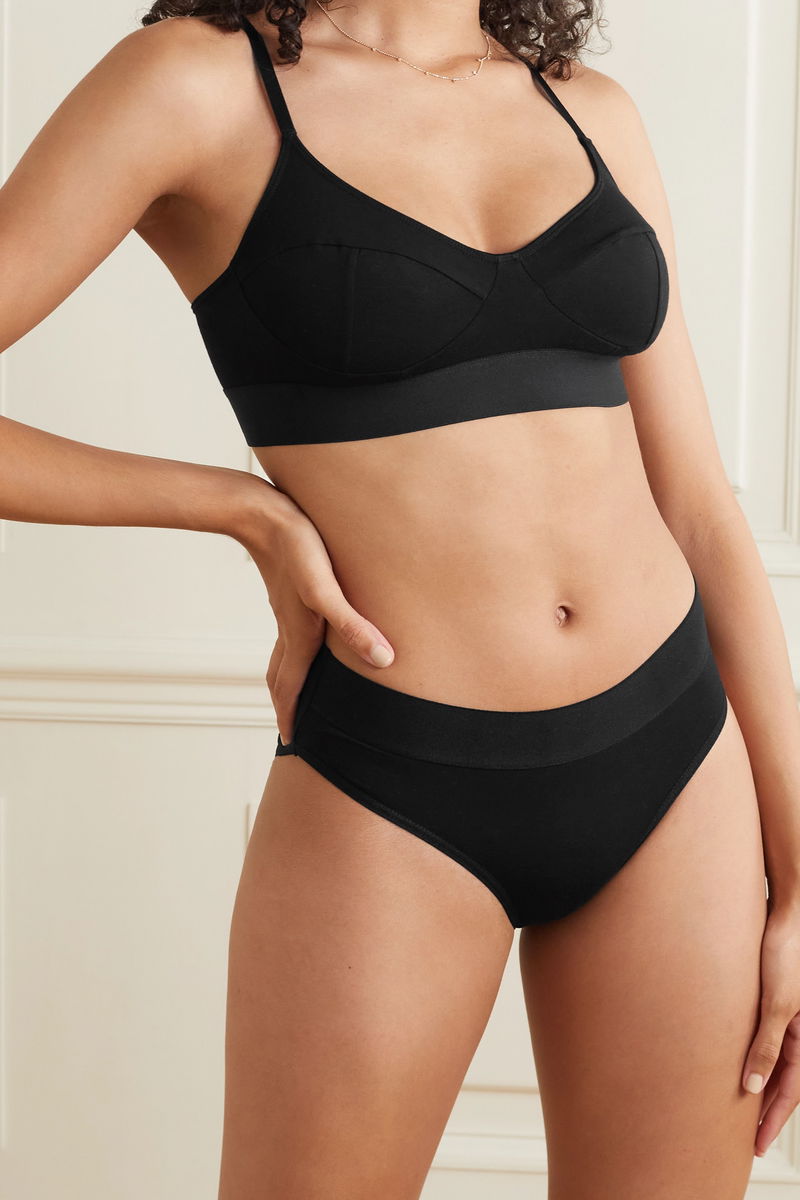 Baserange's set of two briefs is made from beautifully soft and finely ribbed stretch-bamboo. They're cut in a hipster shape and have wide elasticated waistbands.