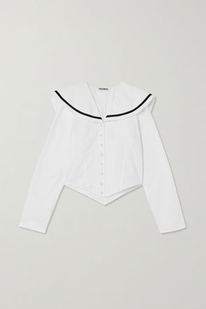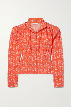 The vintage influences behind Batsheva's 'Lou' blouse are so vast - we can picture it being worn in the 1870s as much as the 1970s. It's made from moire with an exaggerated collar and ruffled trims. Match your accessories to the faux pearl buttons and dainty black velvet bow.