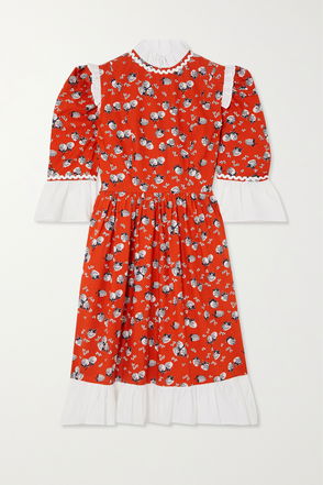 Batsheva's mini dress is cut from vibrant 'Blood Orange' vinyl that brings so much energy to the brand's signature prairie-inspired silhouette. It has voluminous puffed sleeves that frame a square neckline, and a gathered skirt that kicks out from the waist. Style yours with heels and playful patterned tights.