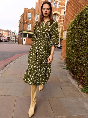 Description: We challenge you to find a dress more joyful than Alicia! This playful midi features polka dots and a square neckline. The smocked bodice makes for a flattering fit, while the puffed sleeves create a dramatic silhouette. Crafted in crisp, organic cotton poplin, it's so easy to wear: dress it down with pumps, or wear it somewhere special with heels. Organic cotton is grown without the use of chemicals such as fertilisers and pesticides, helping to support healthier and more sustainable farming practices. Materials: 100% organic cotton Product Code: 113421271