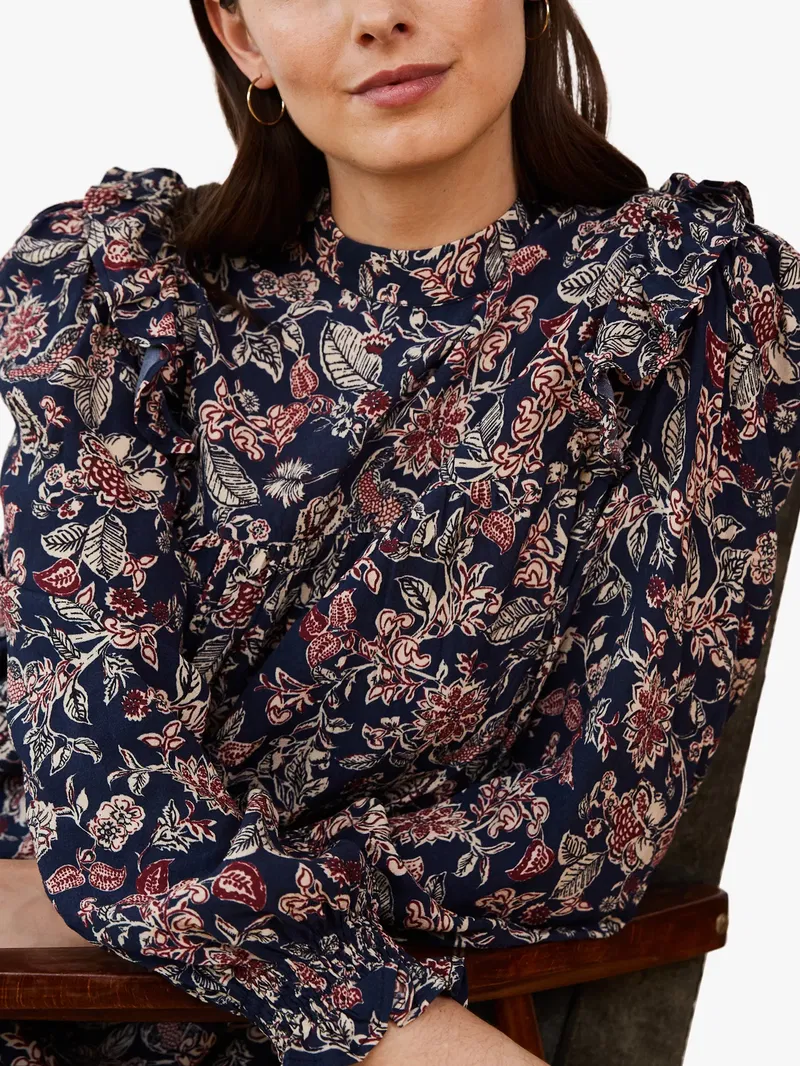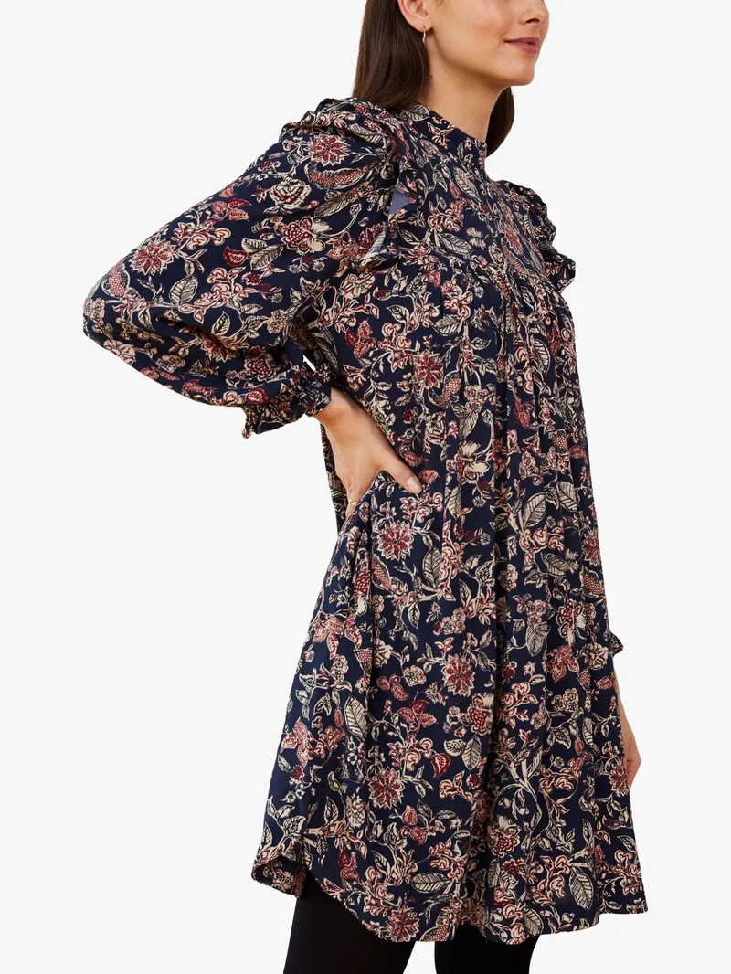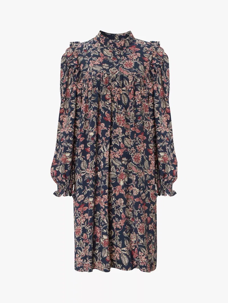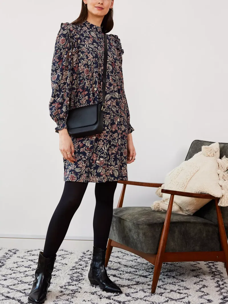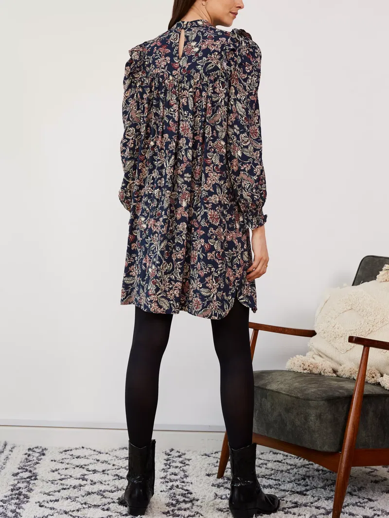 Easy to slip on in a tunic style, this mini dress by Baukjen captures the eye with its paisley motif and ruffle trim. Framed with a crew neck and puff sleeves, this piece is ideal for cool-weather days and winter evening drinks.
