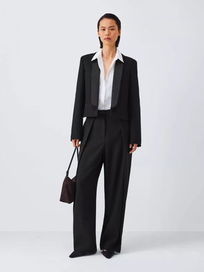 Add a sporty twist to your weekday outfits with the Donna Trousers. A cool and super-comfortable hybrid between a track pant and a tailored trouser, this easy style features a wide-leg silhouette, a pintuck detail down each leg and an elasticated waistband. The woven side stripe in brown makes for a contemporary outfit-topping detail. Crafted in a recycled wool blend, they simply pull on.