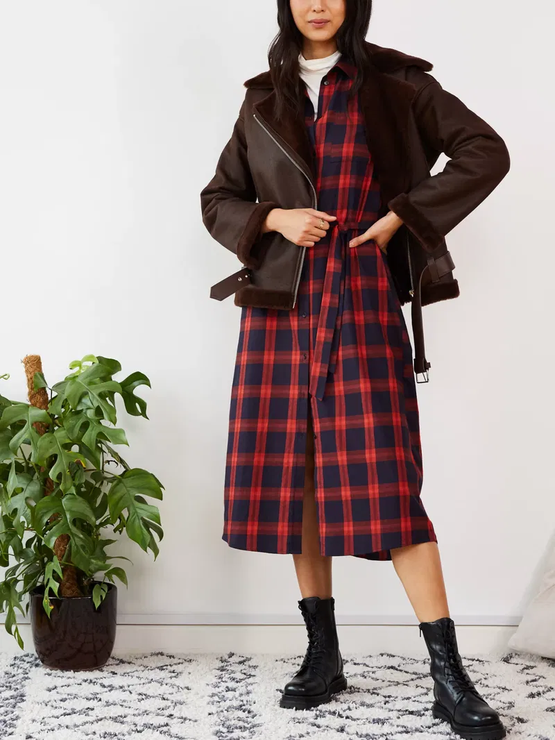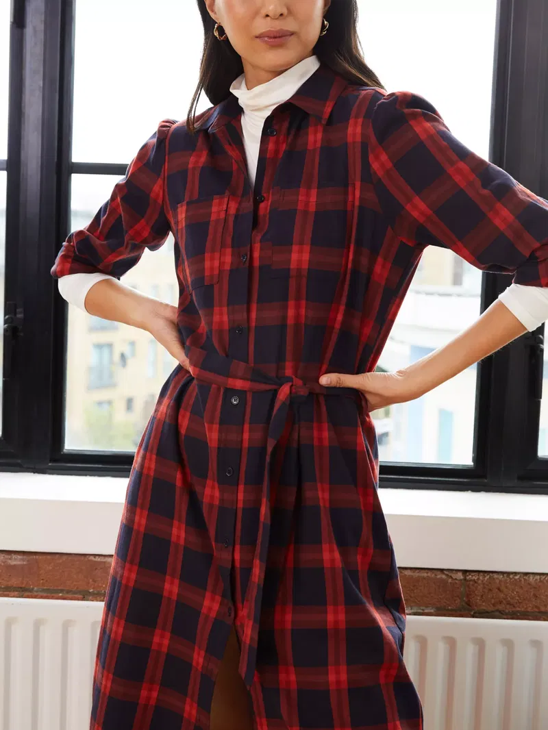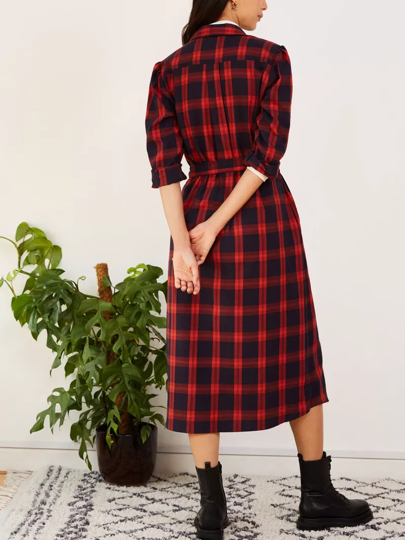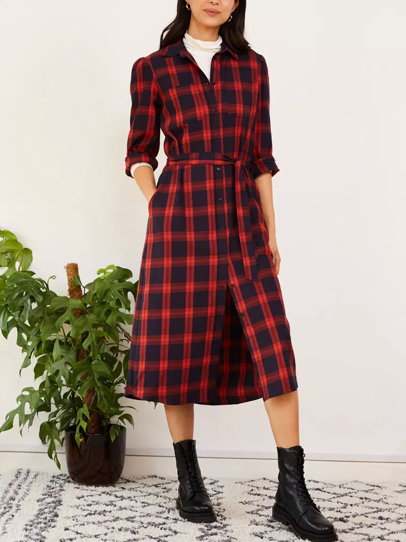 A sleek and modern choice, this midi dress by Baukjen gives you a classic look with its checked pattern. Smartening your look with its collared neckline and long sleeves, it is made from organic cotton for comfortable and breathable wear and is destined to star in your winter edit.