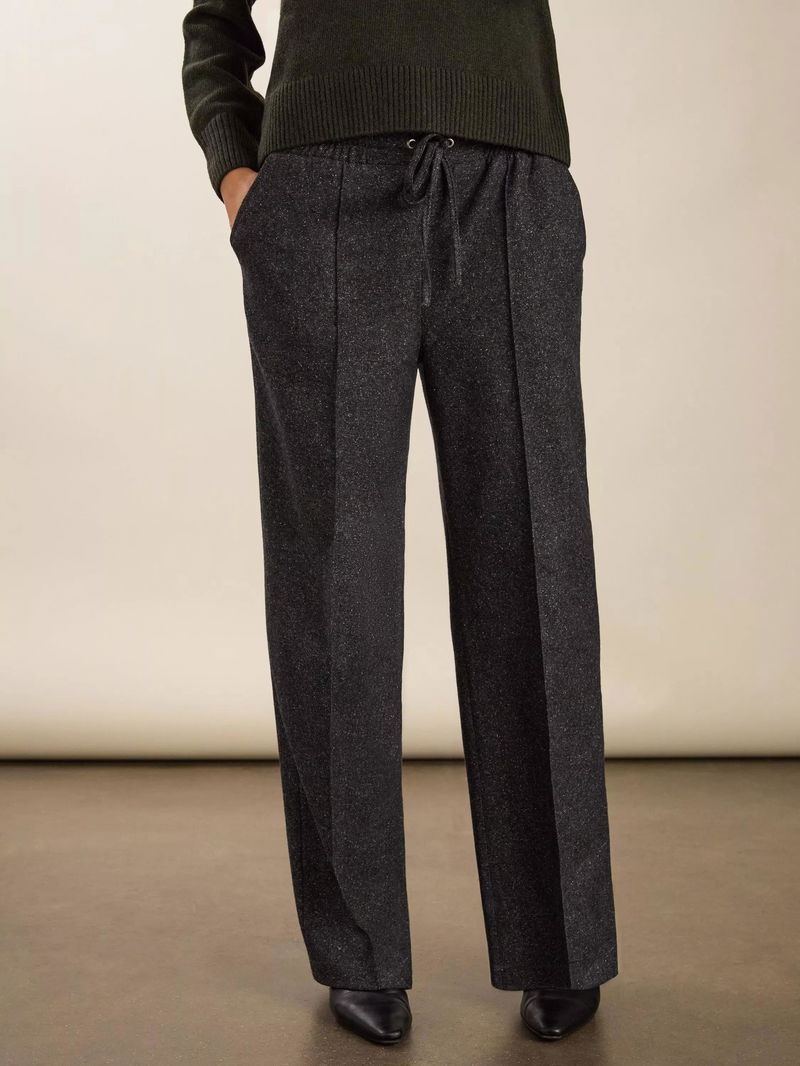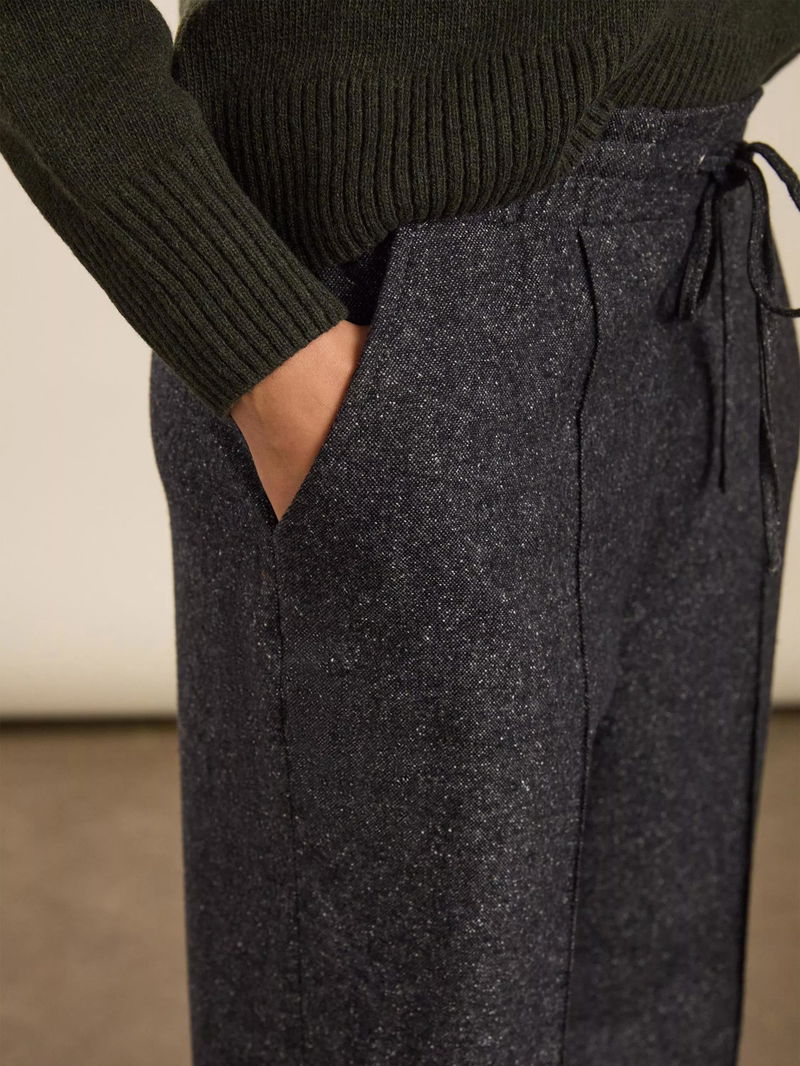 The Fera trousers are the ultimate hybrid between a tailored pair of trousers and a smart jogger. They nail contemporary styling with a wide-leg silhouette, a pintuck detail down each leg and a wool blend. An elasticated waistband guarantees that they are ridiculously comfortable.