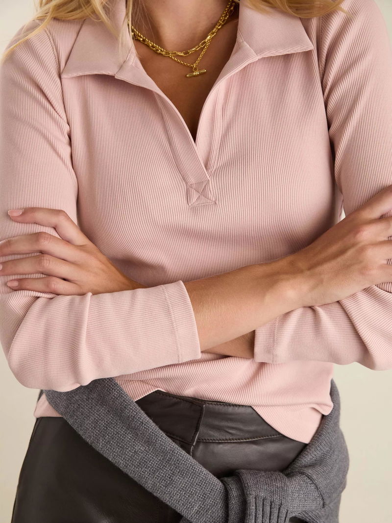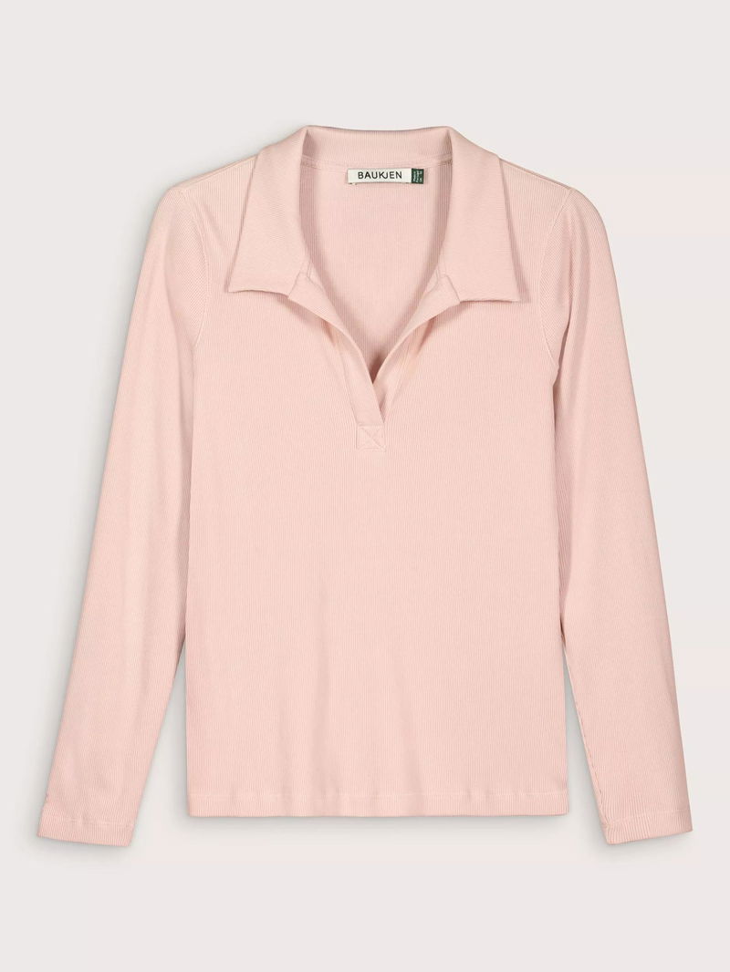 A touch of pink goes a long way in updating an outfit. The Fern Collar Top in powder pink comes in soft and stretchy organic cotton rib jersey with an open neckline and a crisp collar. Cut for a body-skimming fit, it's just the ticket alongside tailored trousers and under blazers, as well as tucked into jeans for casual weekend looks.