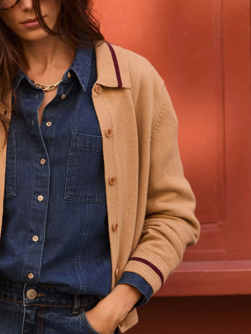 A knit with a difference, the Gillian Cardigan features a considered neckline and a contrast stripe around the collar, cuffs and hem. Made from a premium, midweight blend of Italian wool and super-soft to the touch, its colourway offers maximum versatility.