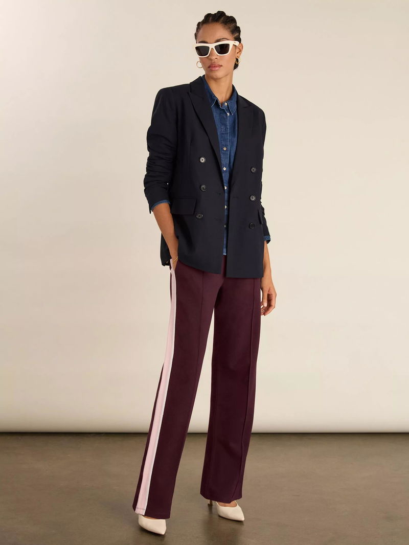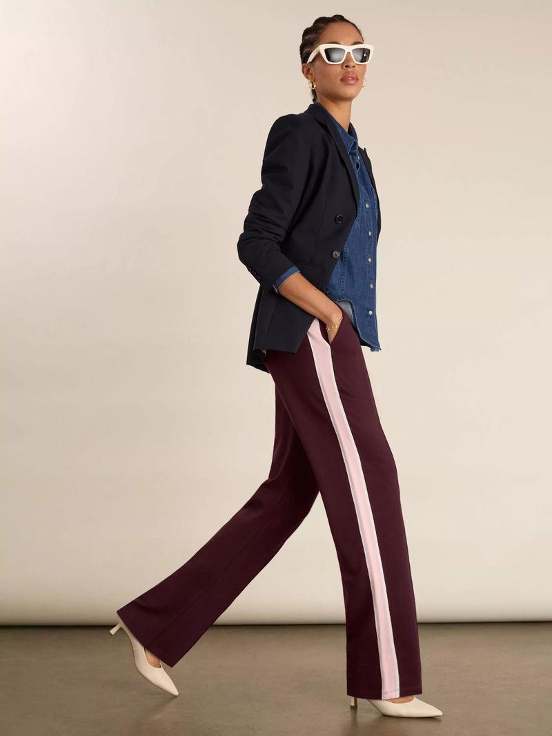 Lisa Side Stripe Trousers Containing LENZING™ ECOVERO™ Viscose, Plum/Pink/White