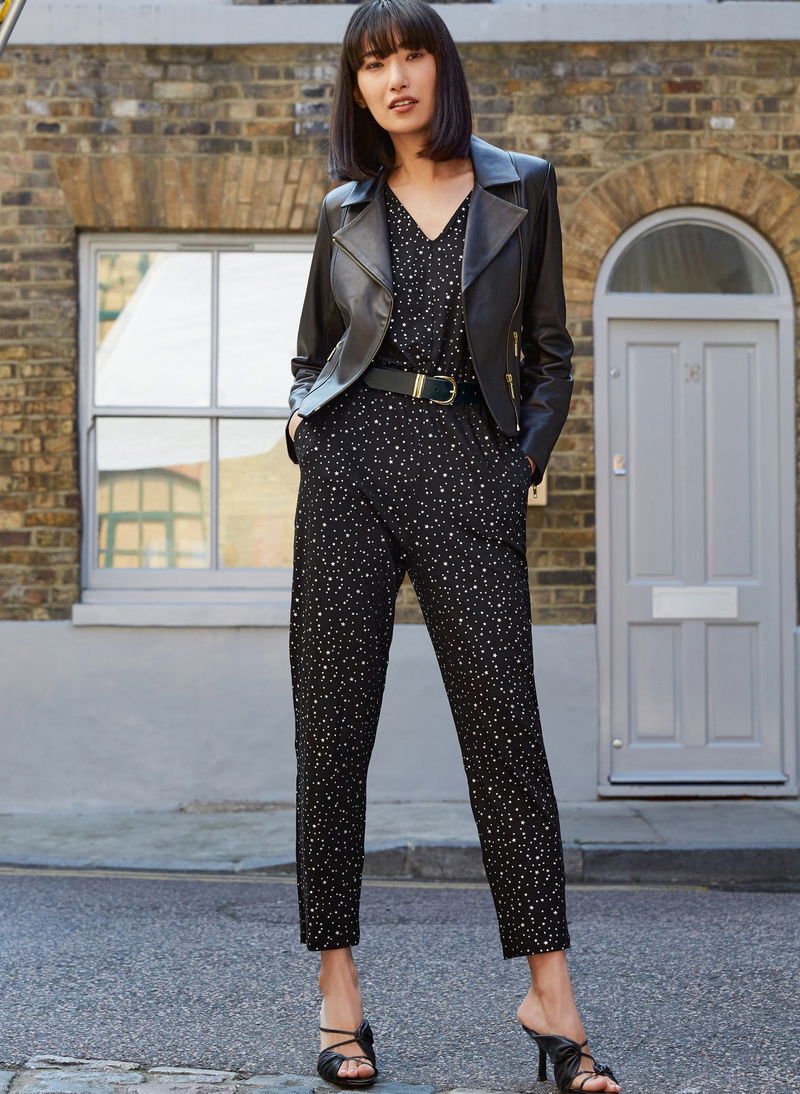 Look no further than the Lorelle Jumpsuit. Dappled with dainty silver stars (just like the Lorelle Dress), this 80s-inspired jumpsuit is as easy to wear as it is to slip on thanks to its viscose jersey fabrication. The trouser shape takes its cue from our ever-popular Neath Pant, with a full-length tapered leg and practical slash pockets. Cinch in the waist with a leather belt and simply add your favourite heels.