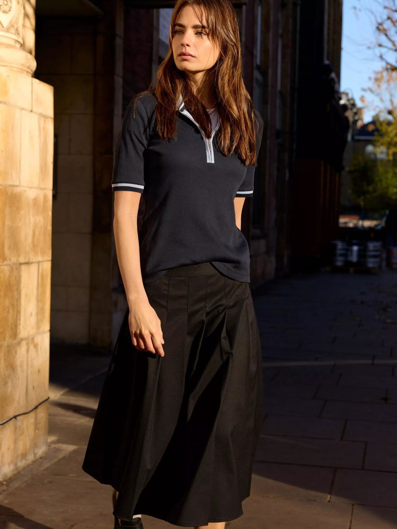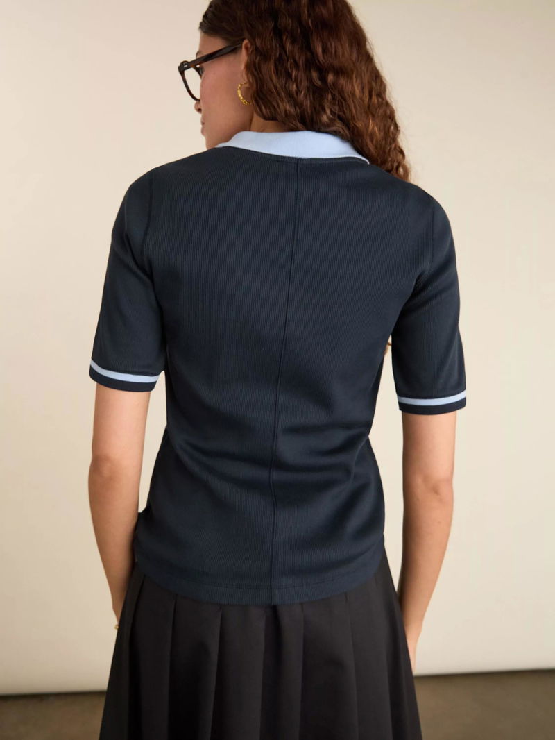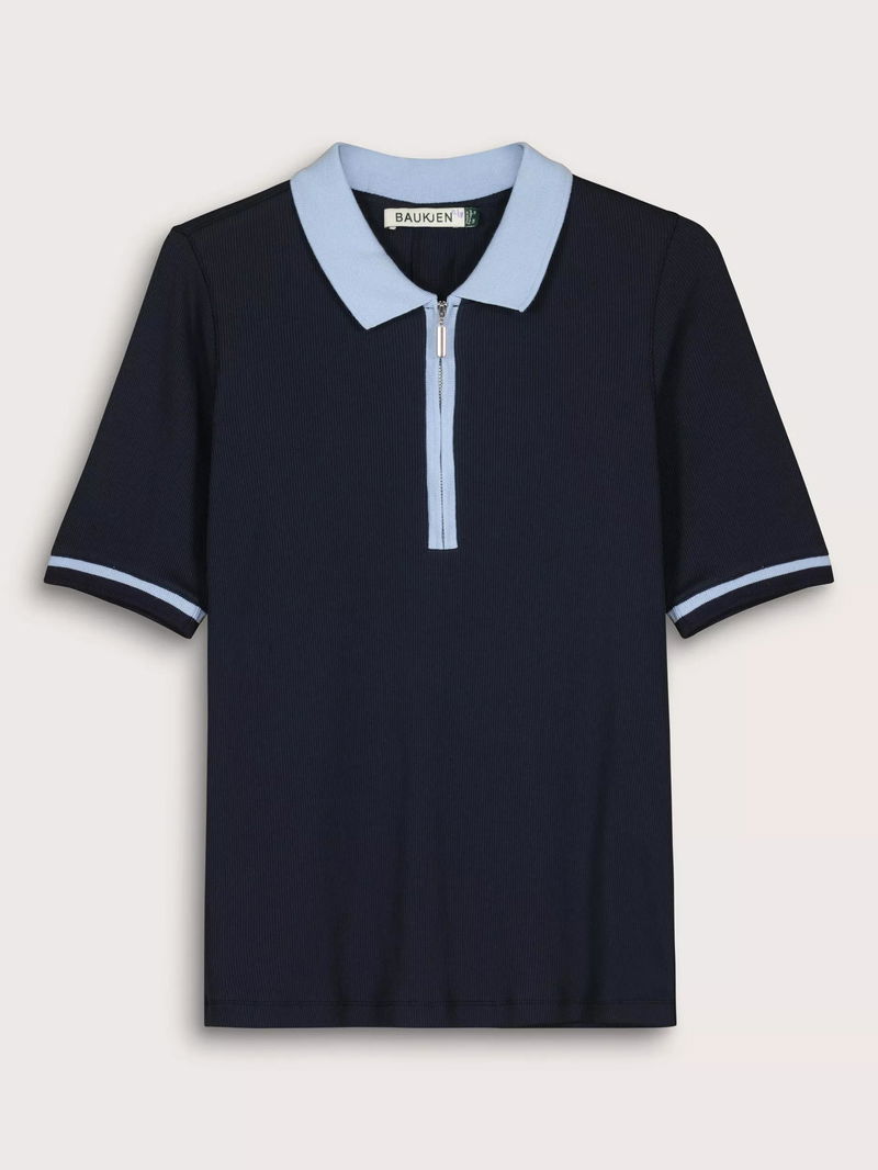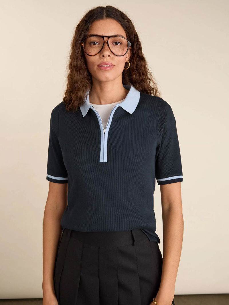 Lydia Rib Collar Zip Top, Navy/Ice Blue