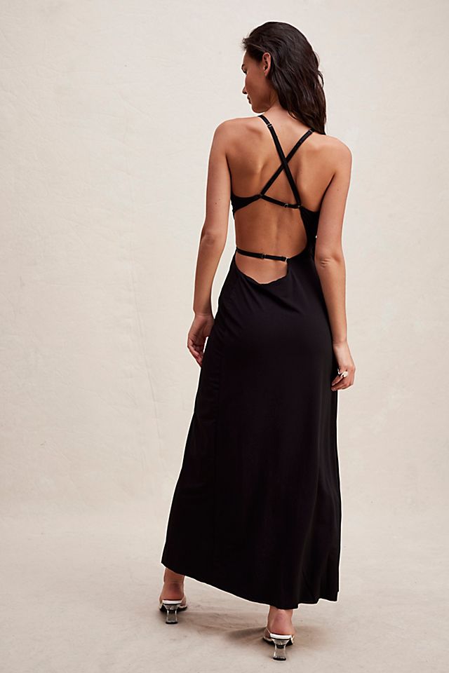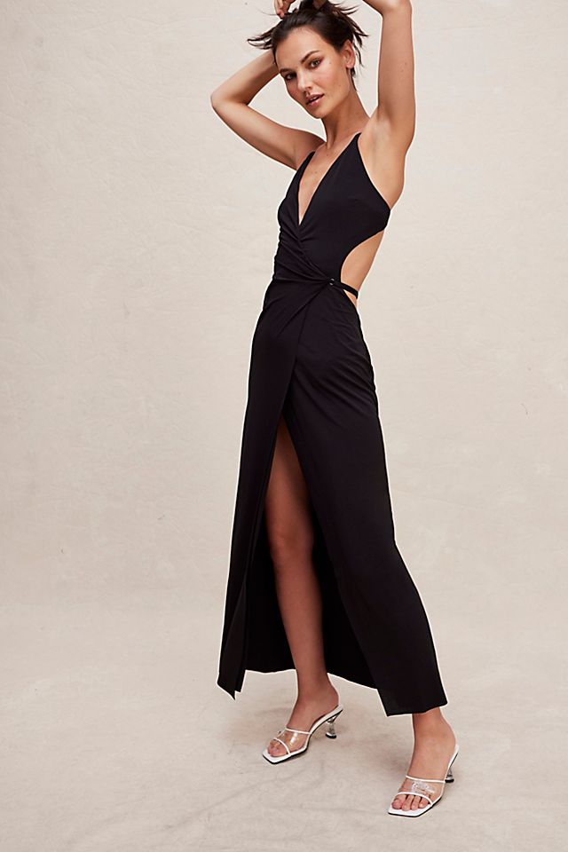So sleek and sultry in a strappy design, this stunning maxi dress is featured in a wrap-front silhouette with cutouts at sides and super exposed back for added dimension. Fun and flirty in a cool and contemporary design, this fun maxi dress is sure to turn heads at any special event.