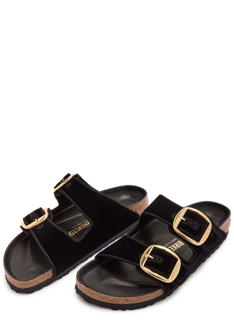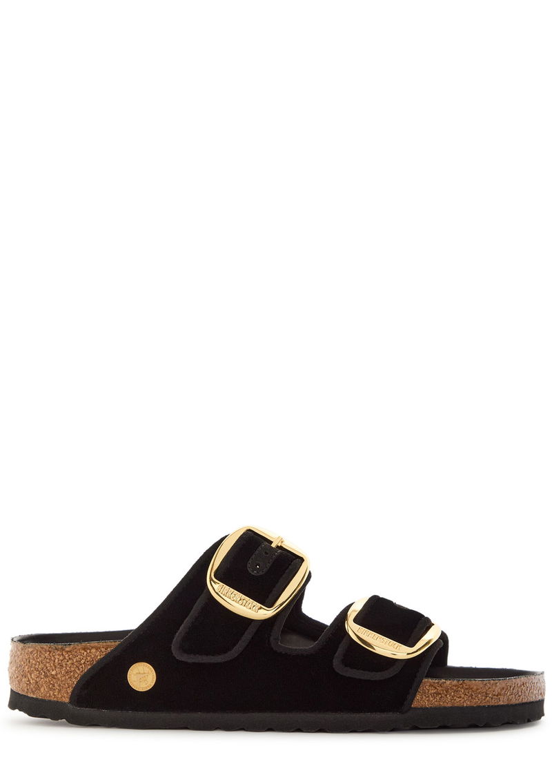 Birkenstock velvet sliders.