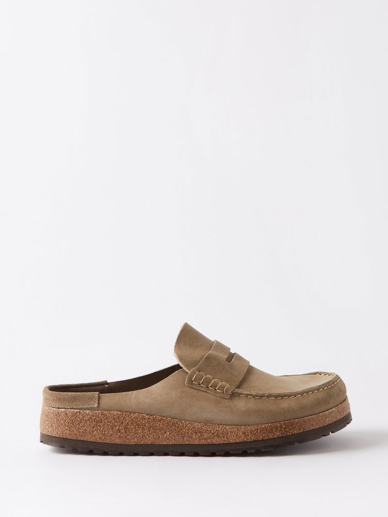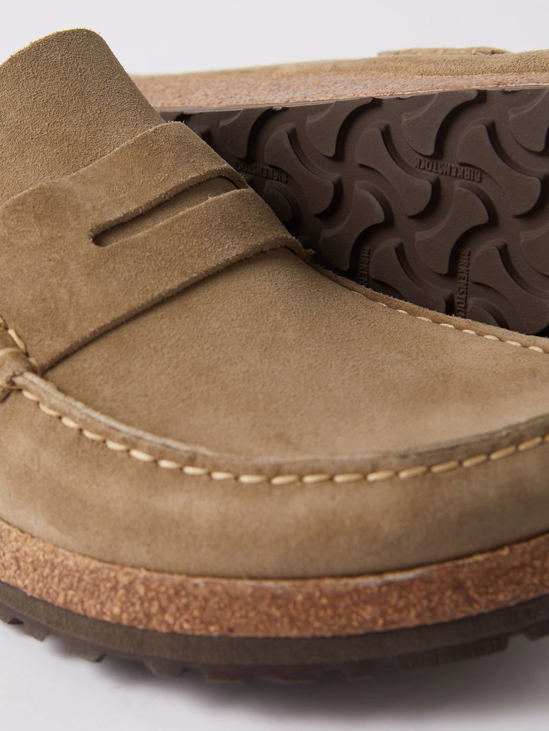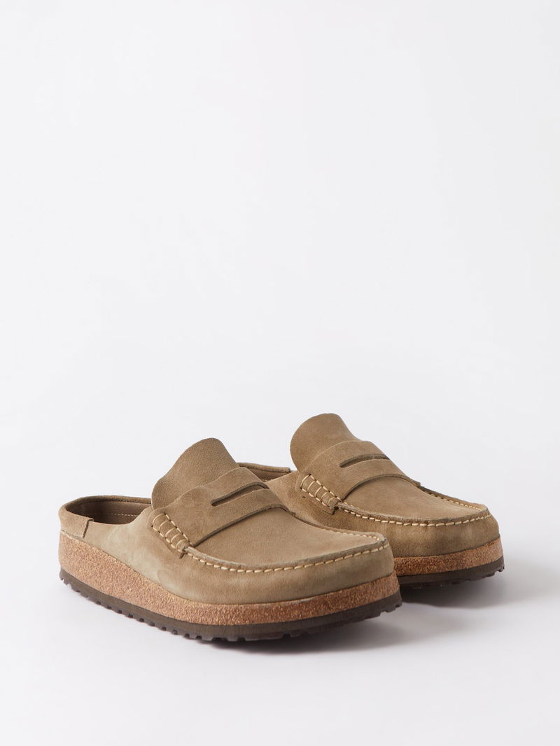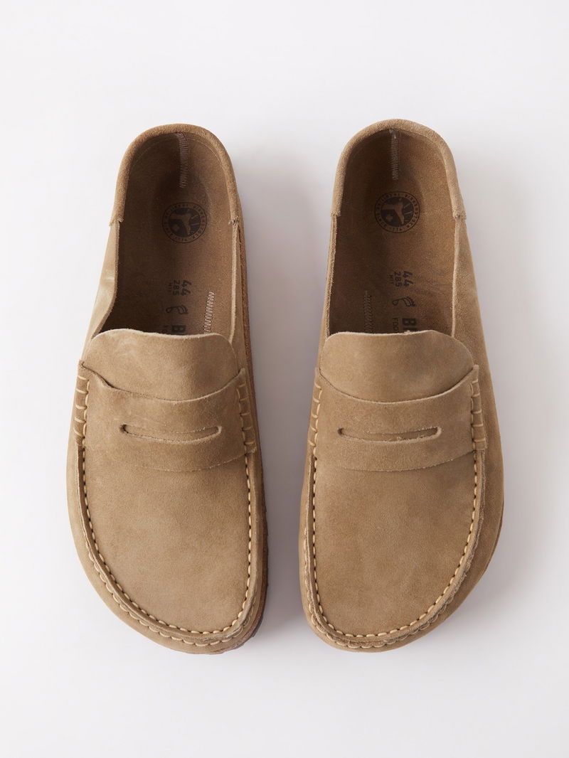 Birkenstock's brown Naples loafers are constructed in Germany from a brushed suede upper, moulded footbed and rubber sole, ensuring a supportive and comfortable step.