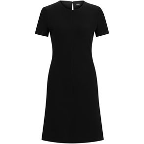 Dress, Jersey, Pleated, Front split, Asymmetric hem, Slips on, Mid-weight, slightly stretchy fabric.
