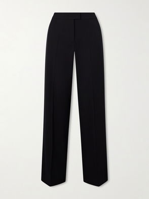 Wide-leg pants, Twill, Cotton-blend, Pleated, Back welt pocket, Two side slant pockets, High-rise cut, Concealed hook, button and zip fastening at front, Mid-weight, slightly stretchy fabric.