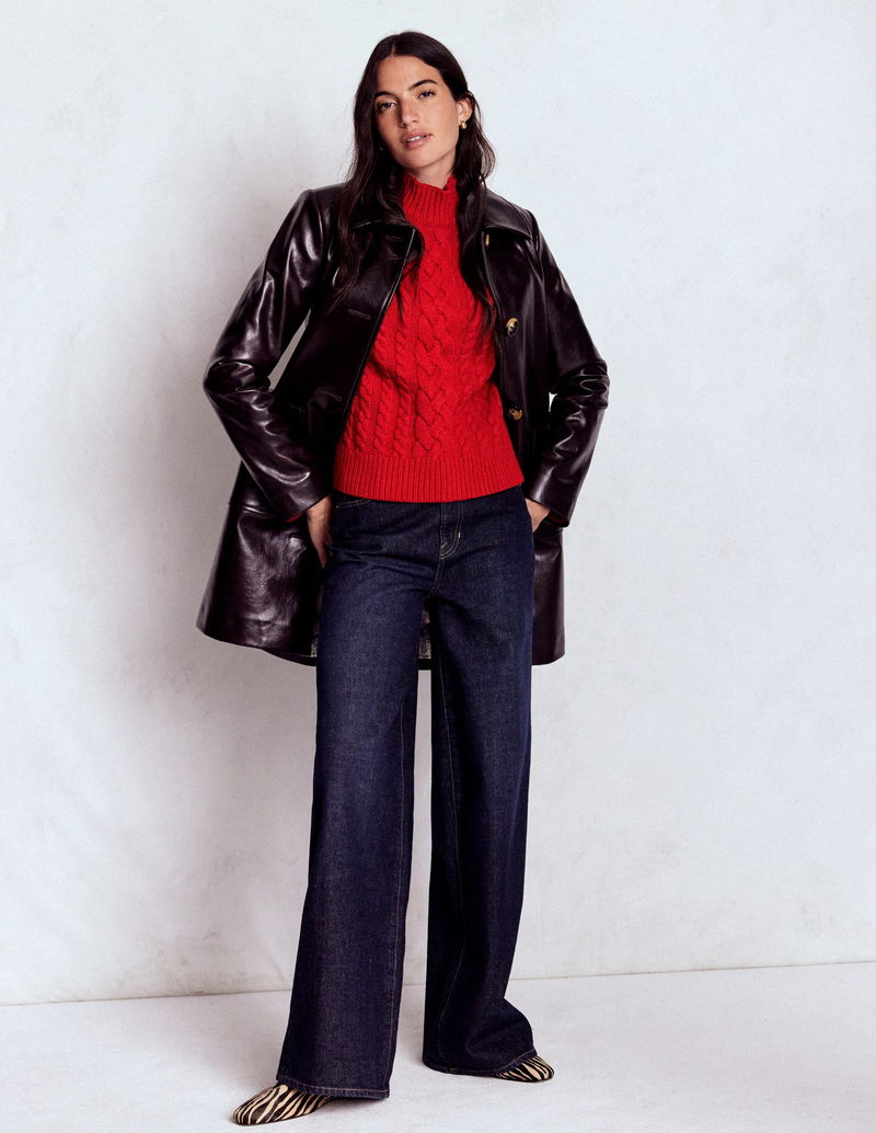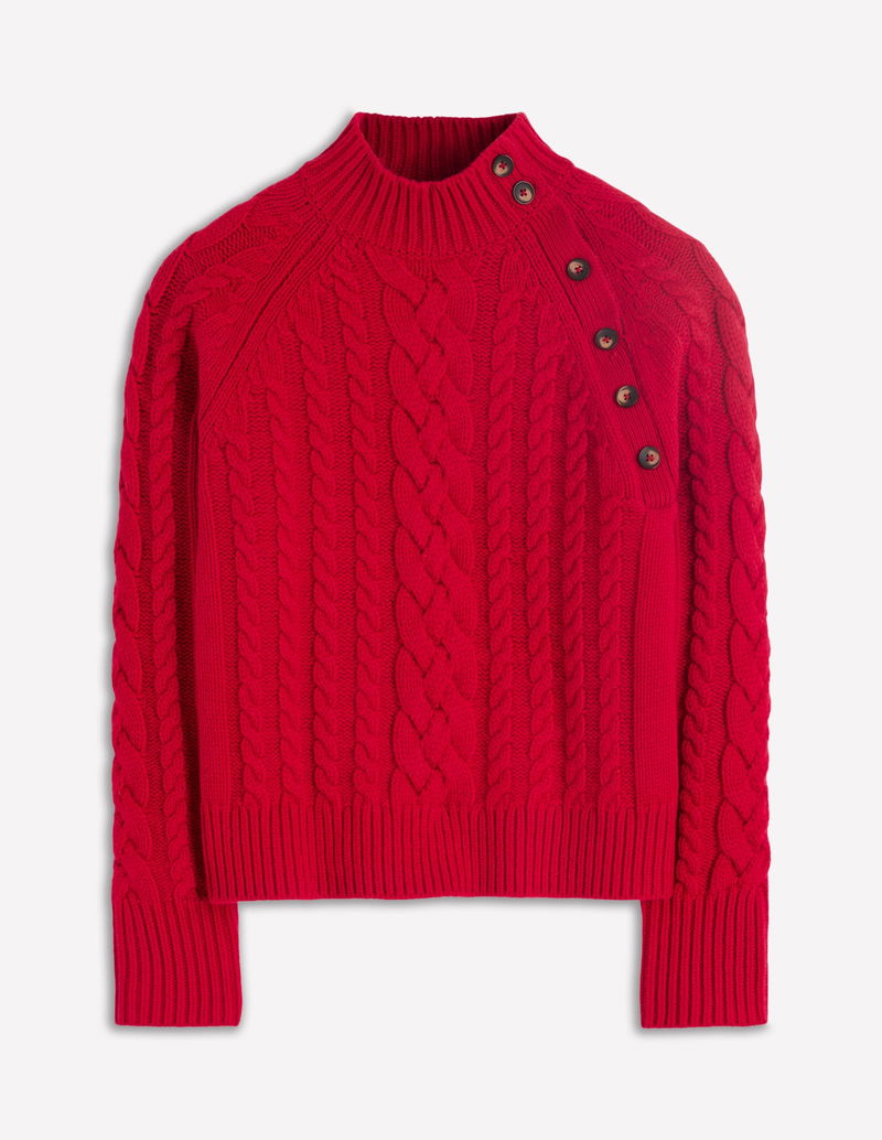 This chunky cable knit jumper with a high neck and button detail acts as a love letter to cold crisp mornings. Spun from merino wool that's certified by The Responsible Wool Standard it's a worthwhile long-term investment. Pair it with a tartan kilt to set the tone for early morning coffee runs and last minute dinner plans. l