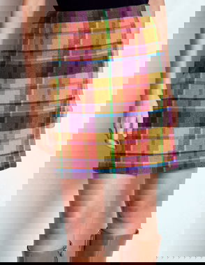 This modern mini skirt has major style credentials. Its flattering wrap cut (that closes neatly with a concealed button) is adorned with intricate in-house-designed embroidery. A full cotton lining provides a smooth finish and all-day comfort, while contrast stitching adds an extra pop of colour.