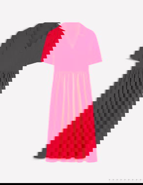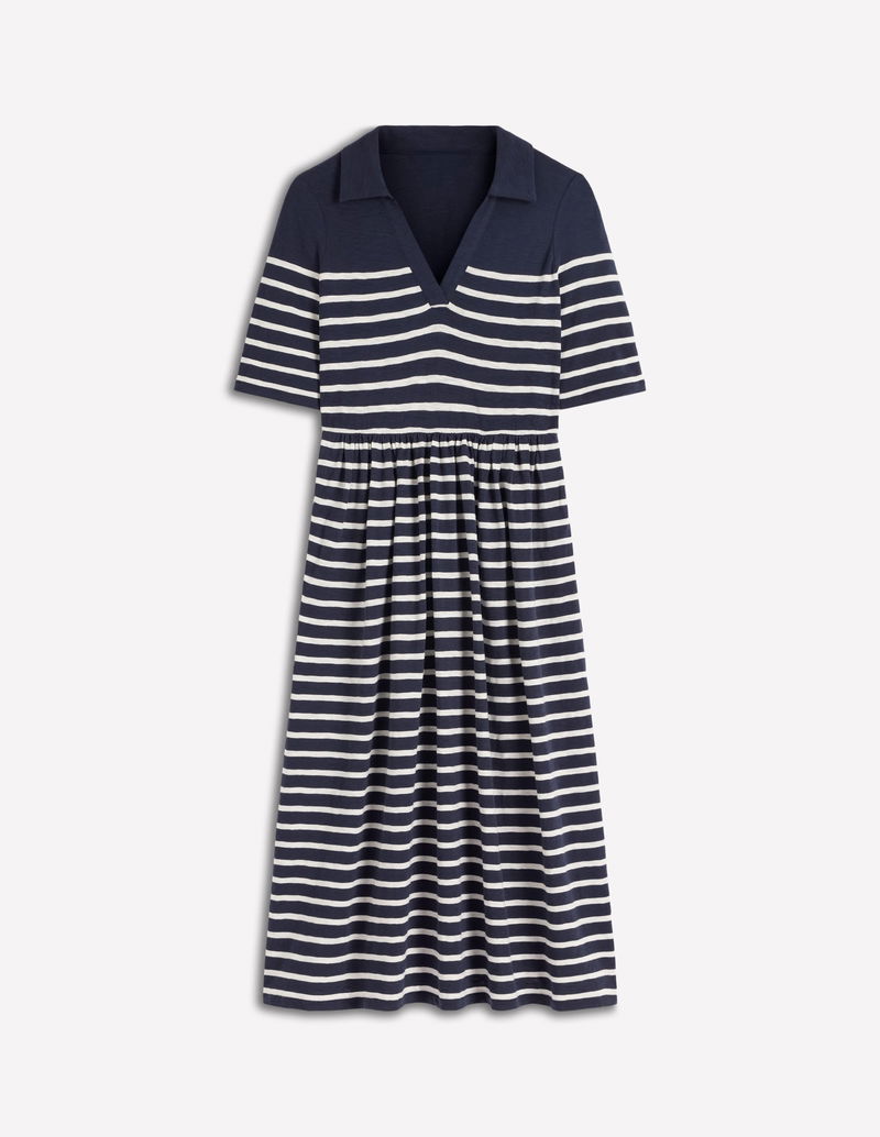 Aria Collared Jersey Dress-Navy, Ivory Stripe