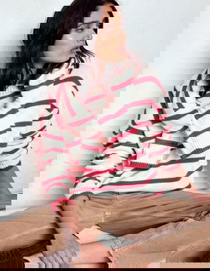 Fringing at the cuffs and hem of this semi-fitted jumper gives it a feminine finish. Knitted with a touch of alpaca for irresistible softness, this knitted staple has three-quarter-length sleeves for a flattering shape.