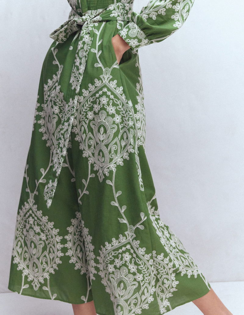 Ava Cotton Midi Dress-Green Broderie