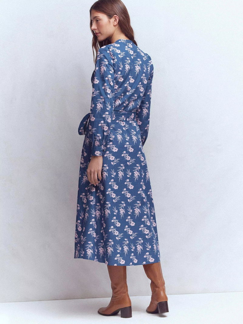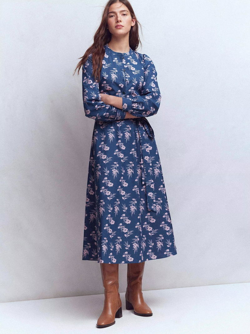 Ava Floral Shirt Midi Dress, Navy