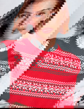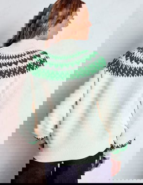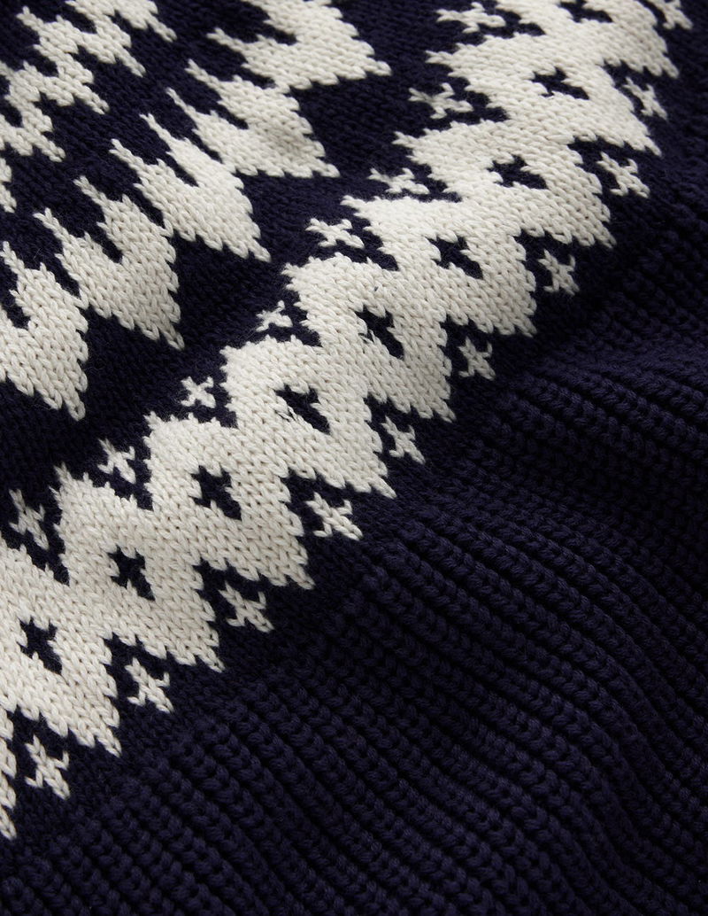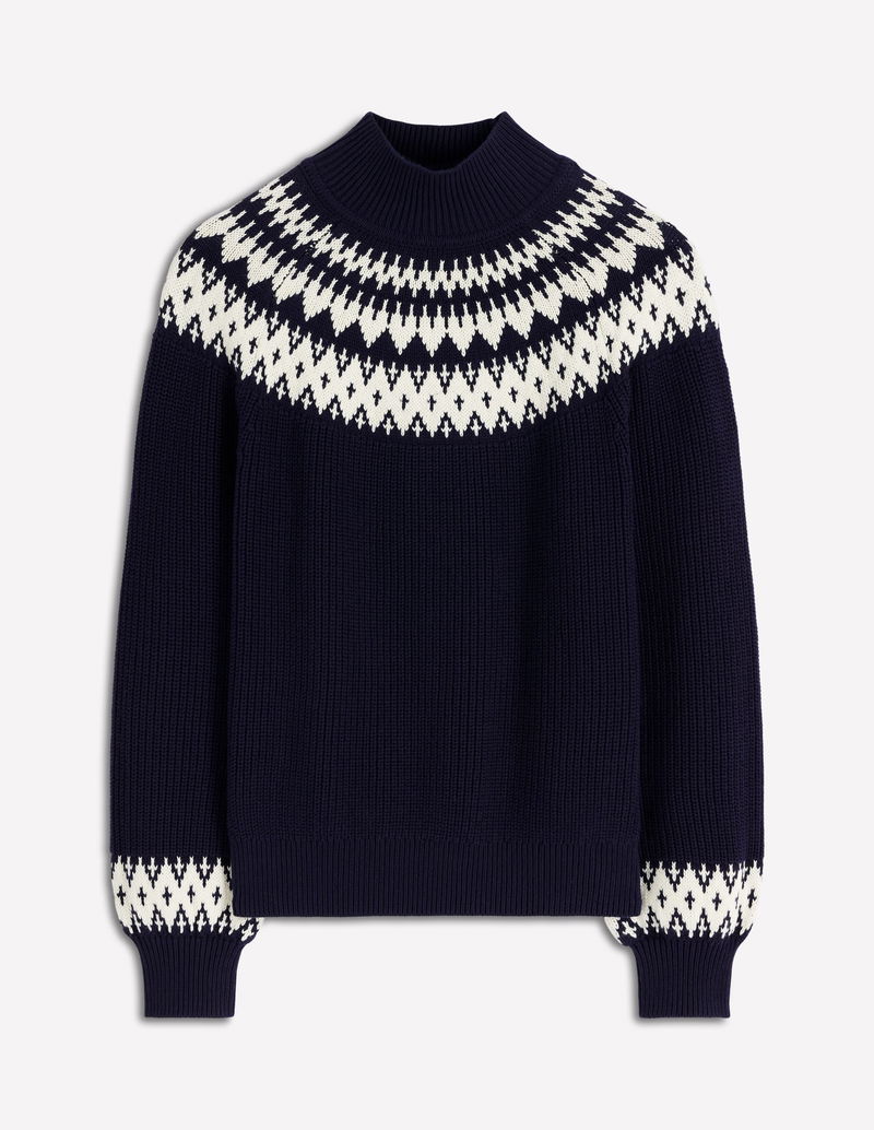 Bianca Cotton High Neck Jumper-Navy Fair Isle