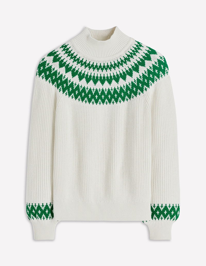 Bianca Cotton High Neck Jumper-Warm Ivory Fair Isle