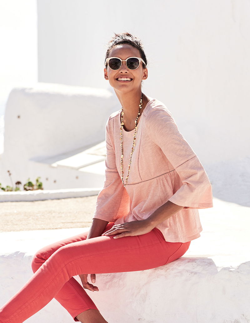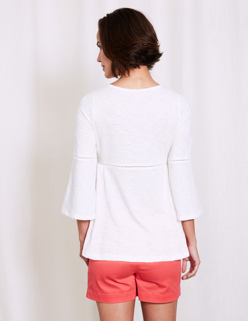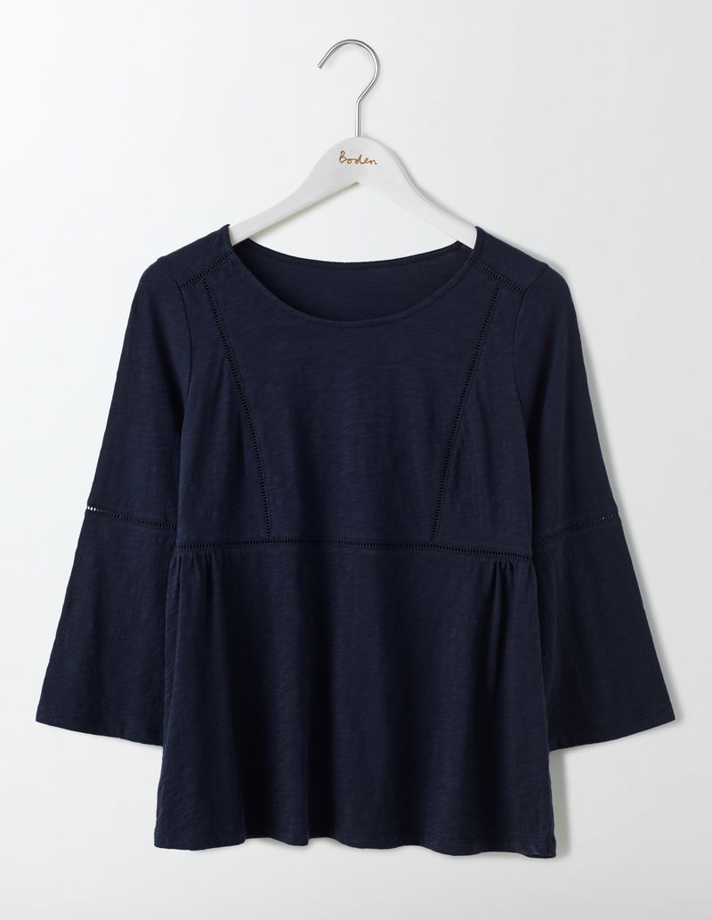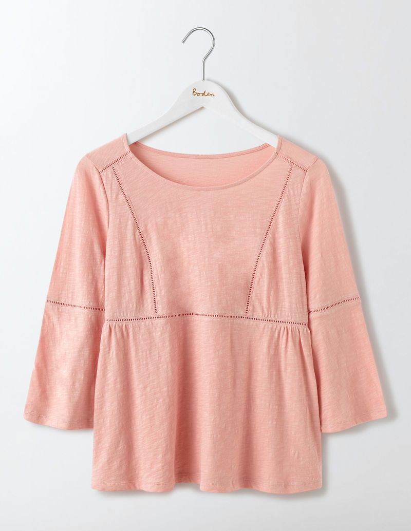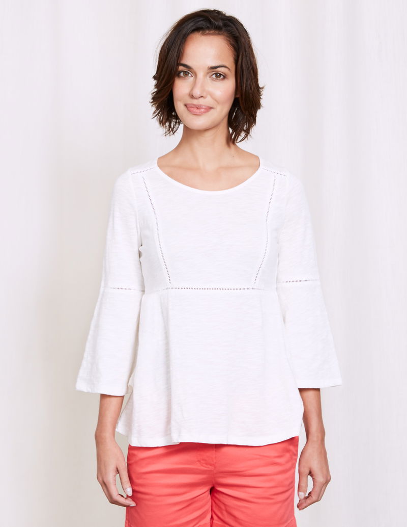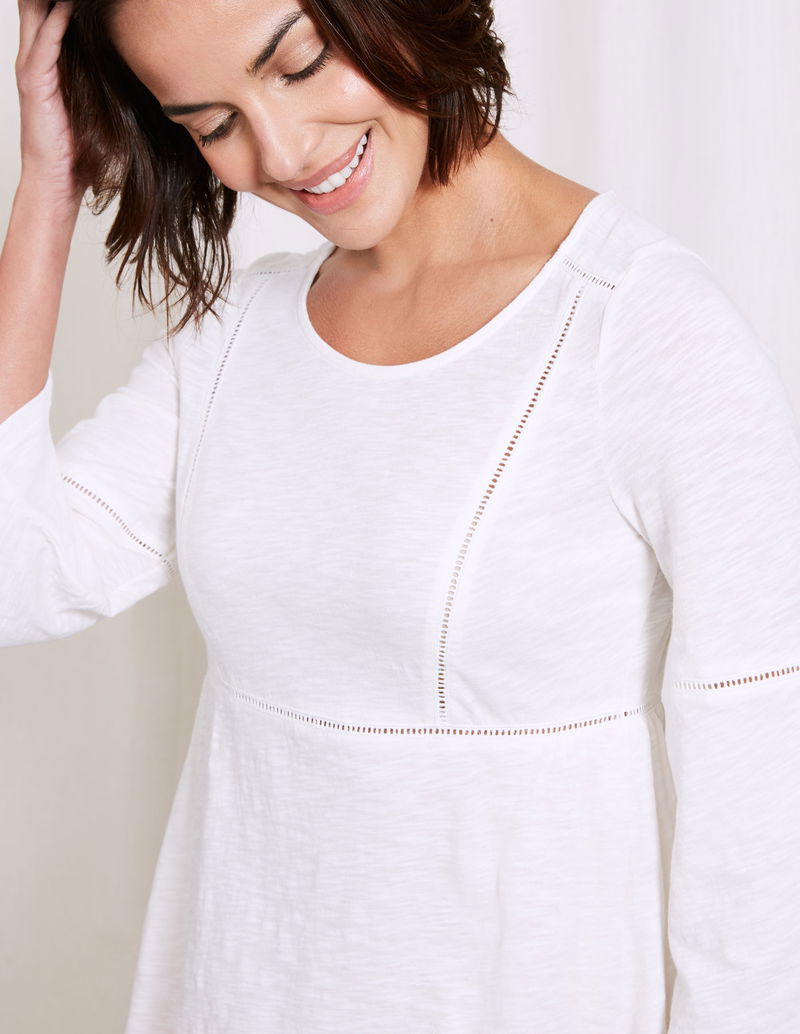 With pretty ladder details and gorgeous fluted sleeves, this dainty top adds the perfect finishing touch to your outfit. Crafted from lightweight cotton jersey, it's super comfortable and nipped-in at the waist for an ultra-flattering fit. Wear over jeans for an effortlessly chic look.